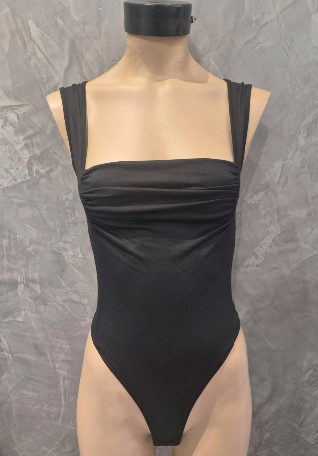 Body manga larga con recortes y aplique en U en medio (microfibra )