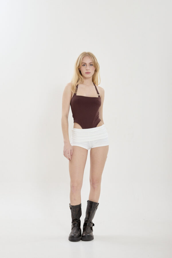Body manga larga con recortes y aplique en U en medio (microfibra )