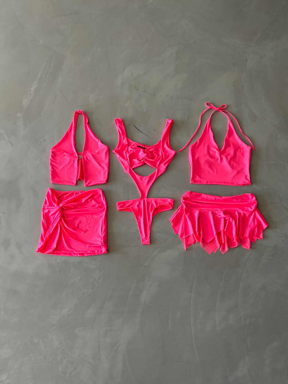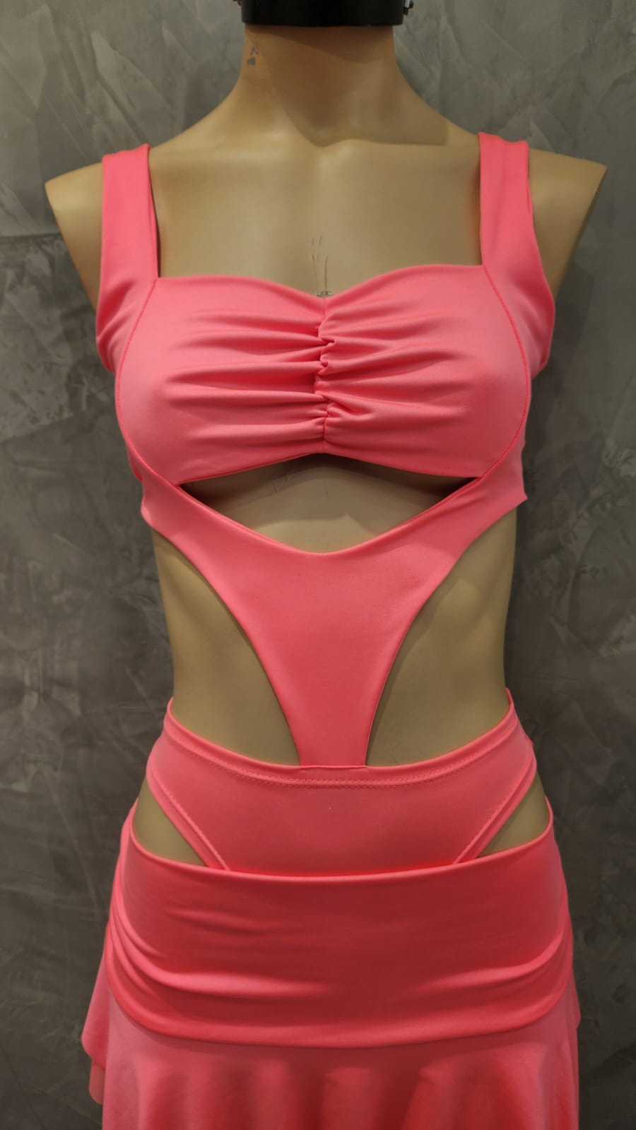 Top de tela microfibra strapless con argolla u y frunce detalle