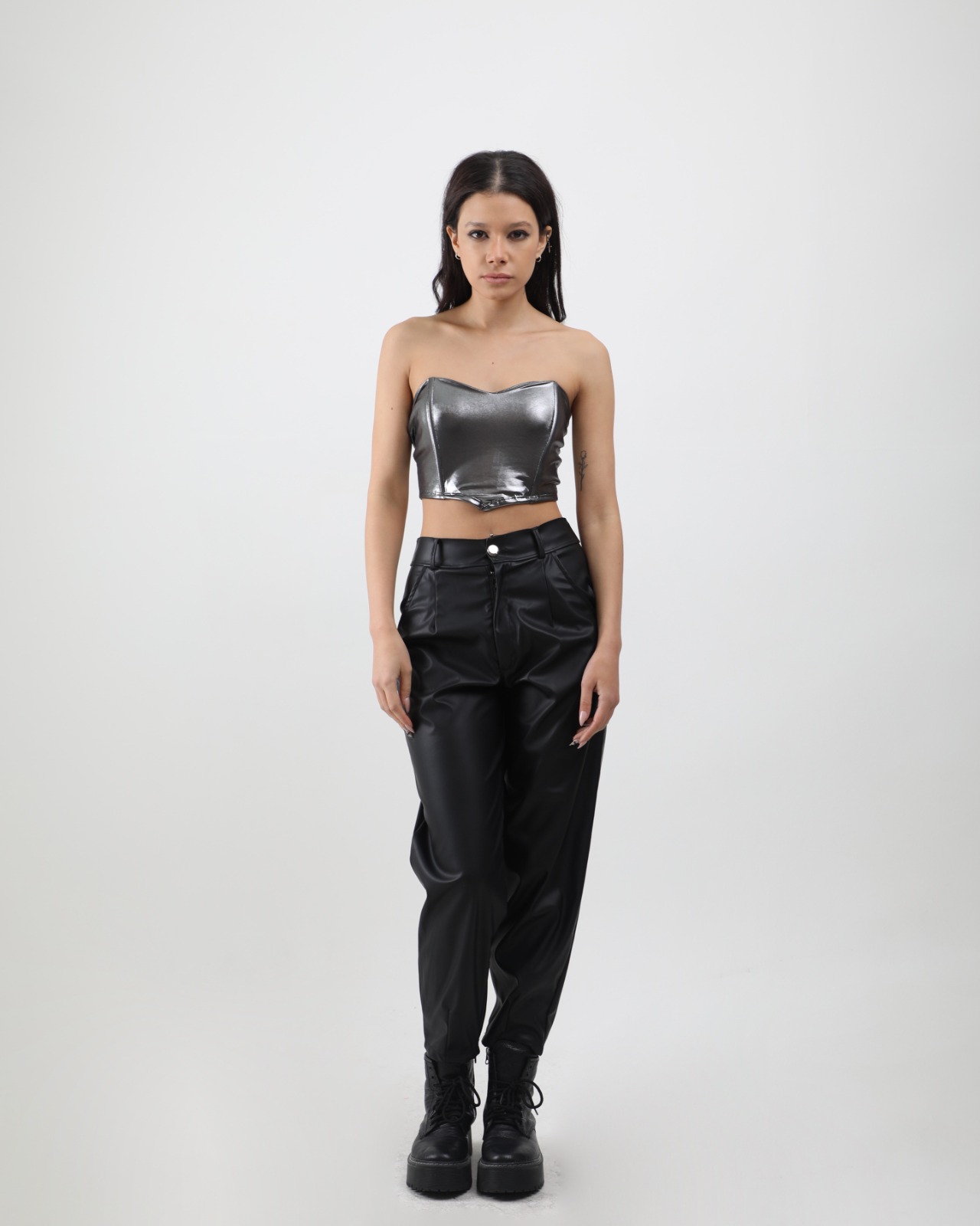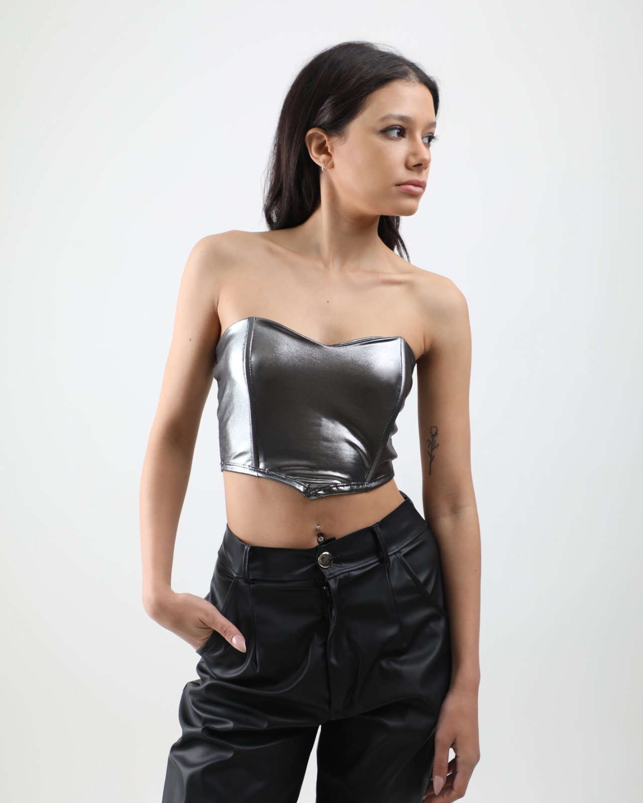 Top de microfibra rey estilo halter top con fruncidos sutiles