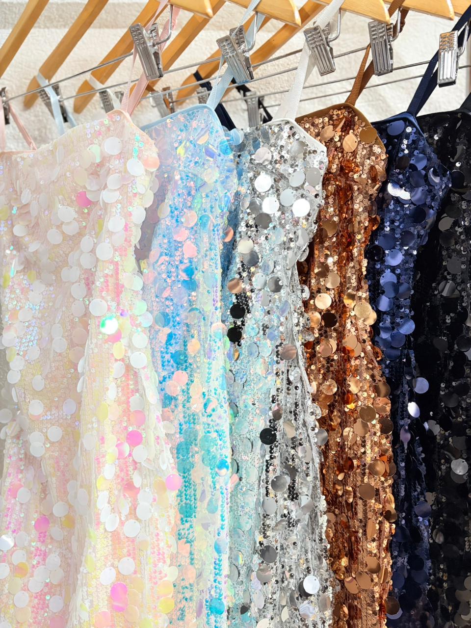 Vestido corto de Lentejuelas opacas escote V con fruncido detalle