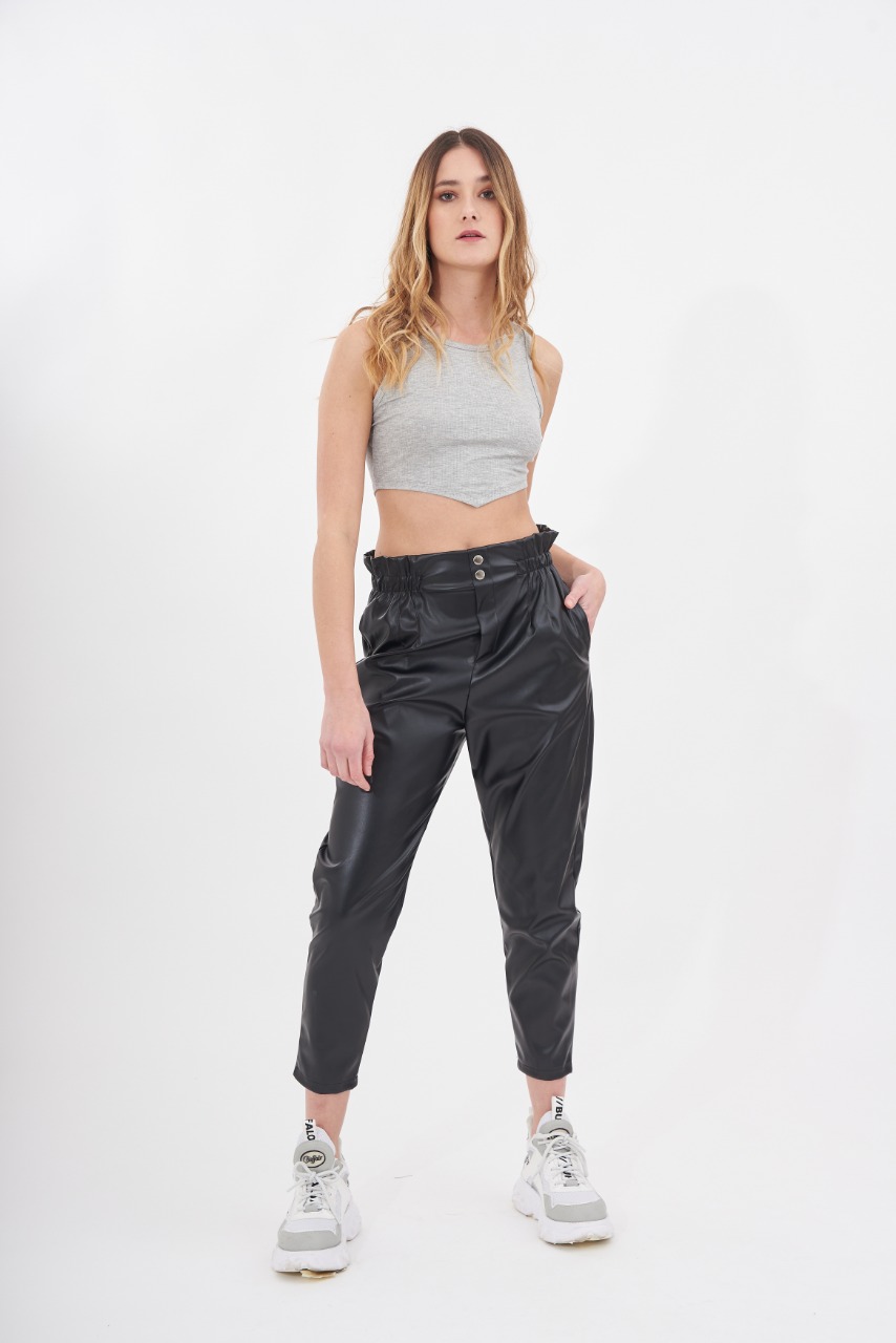 Pantalon Engomado con Frunce y Botones Fantasia en la Cintura