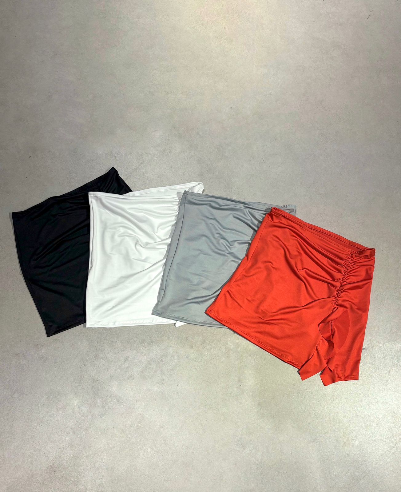 Pollera de tela microfibra con tajo, fruncido detalle y volados