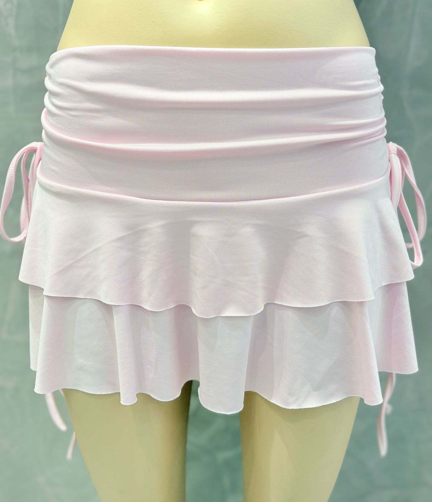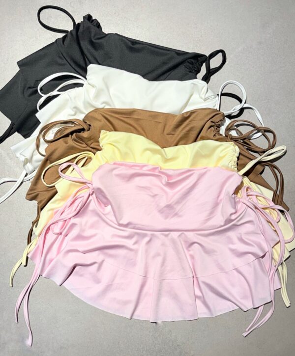 Pollera con volados y tiras que se regulan con aplique (microfibra )