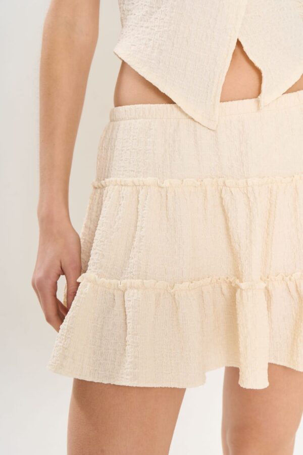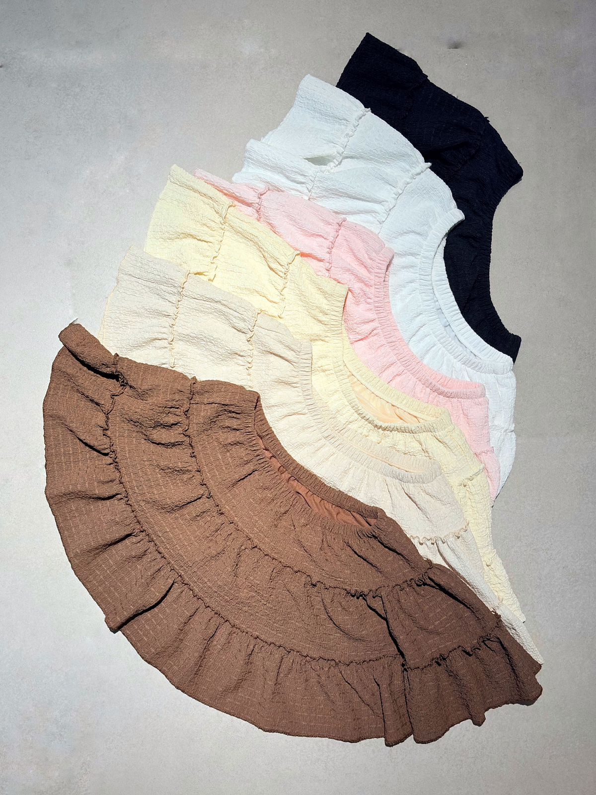 Pollera con volados y tiras que se regulan con aplique (microfibra )