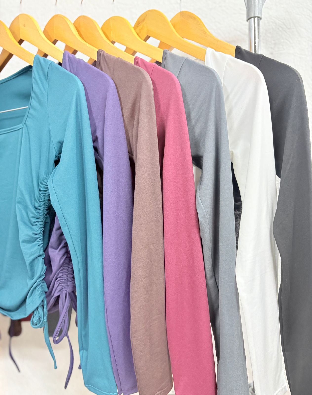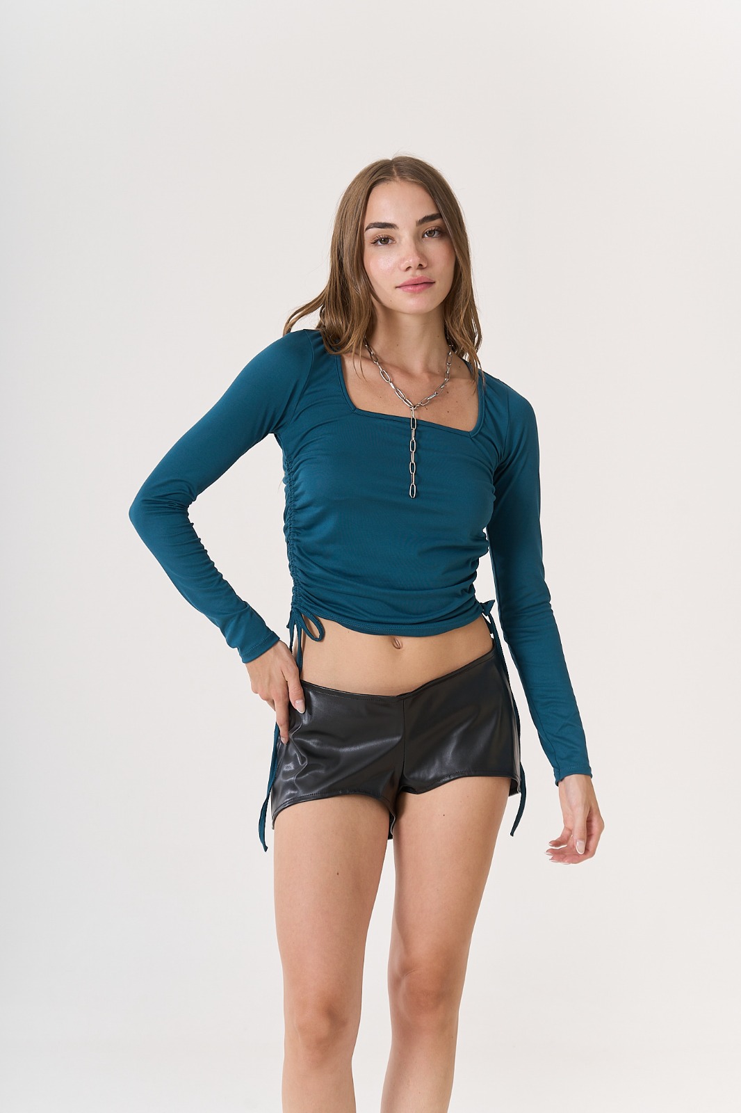 Top de tela microfibra strapless con argolla u y frunce detalle