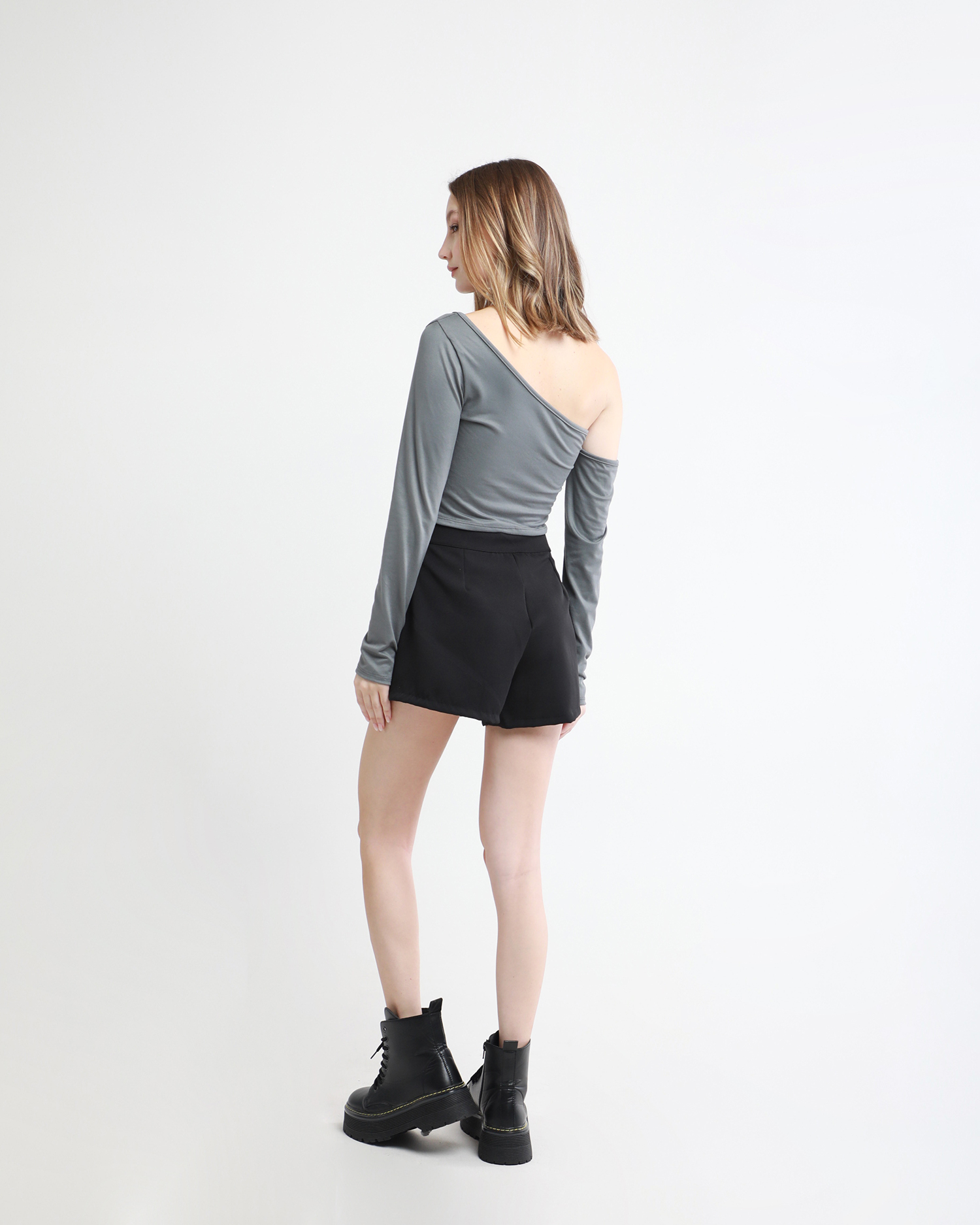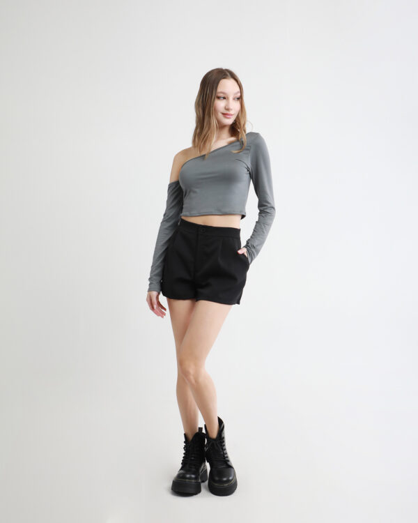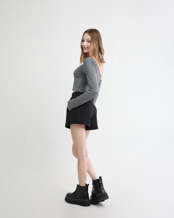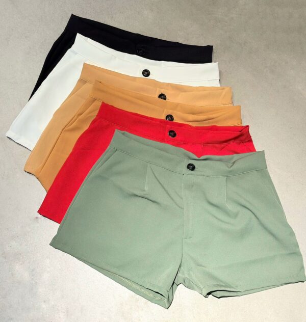 Short Engomado con Recta, Bolsillos y Dobladillo