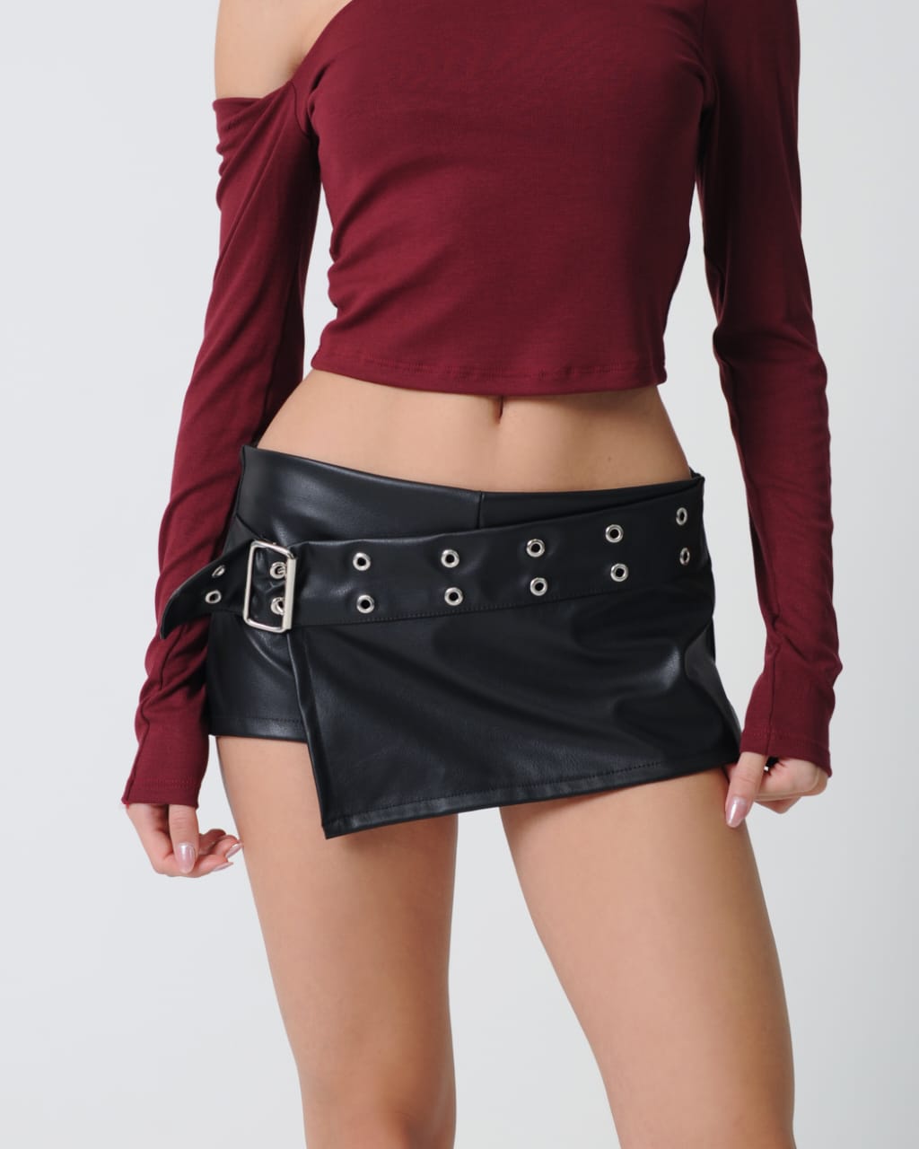 Short pollera con cinturon (pu vintage )