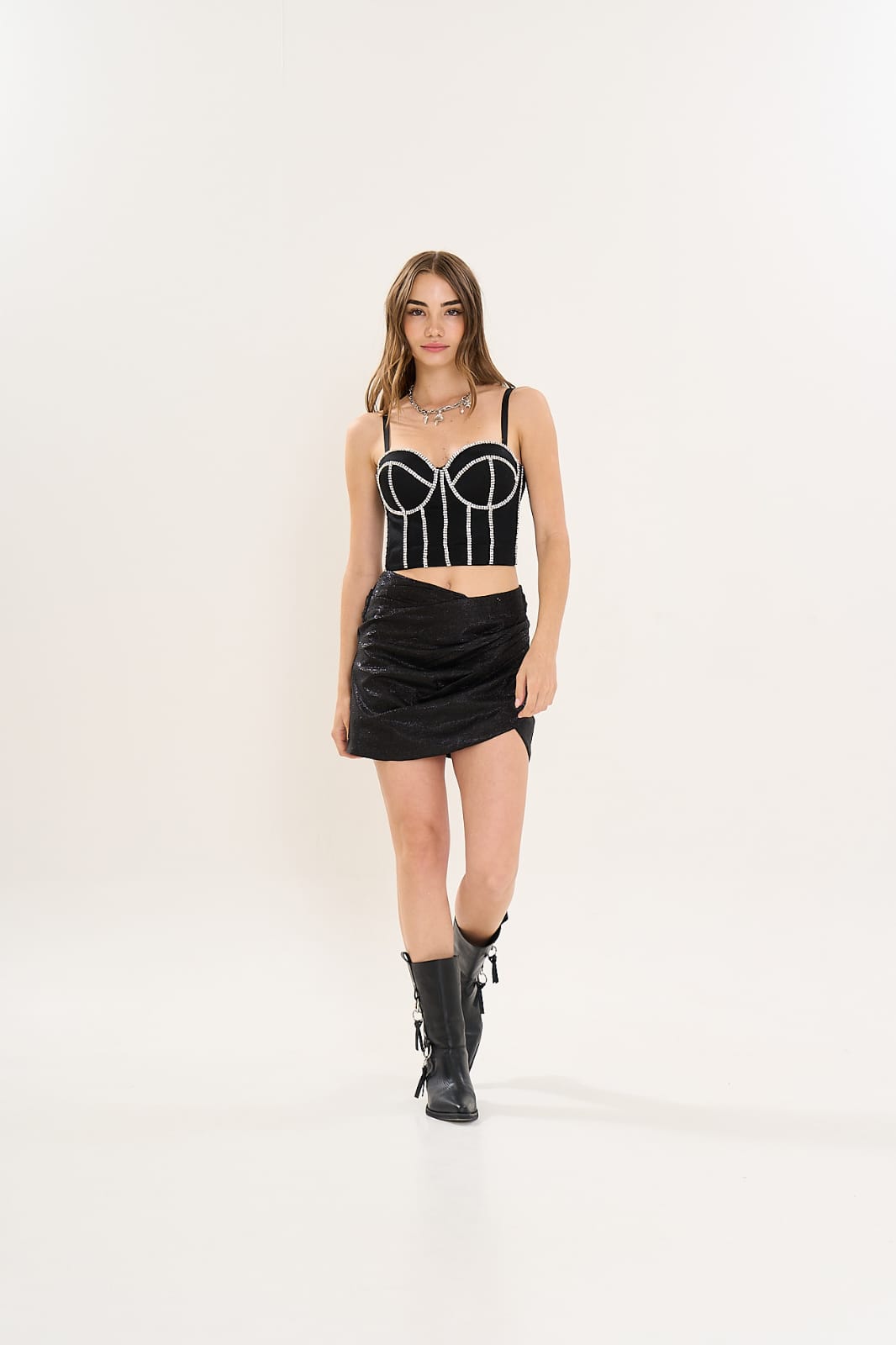Top de tela Baby Kalm manga larga estilo off shoulder con fruncidos detalle y tajos en los lados