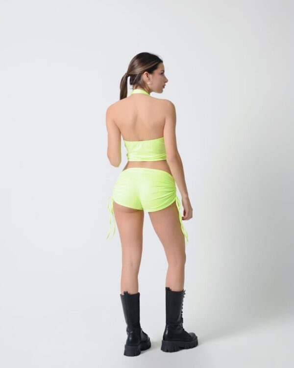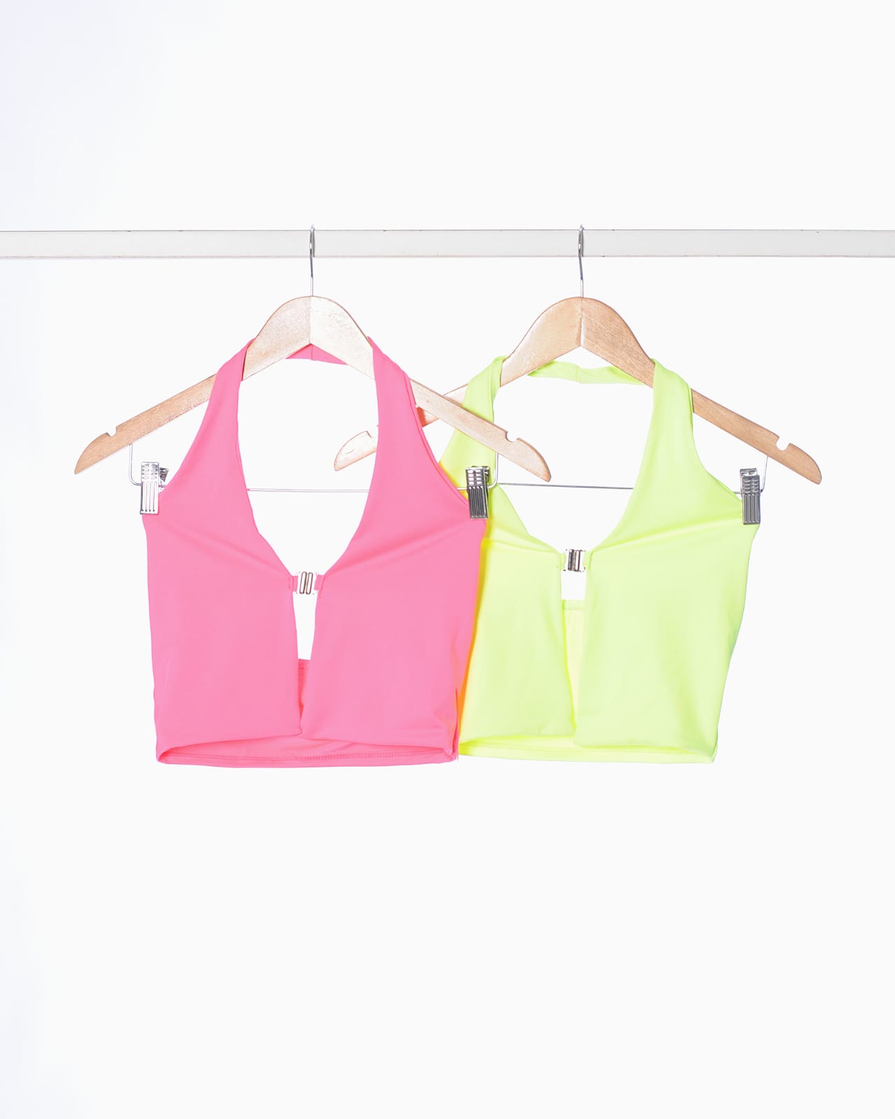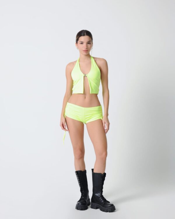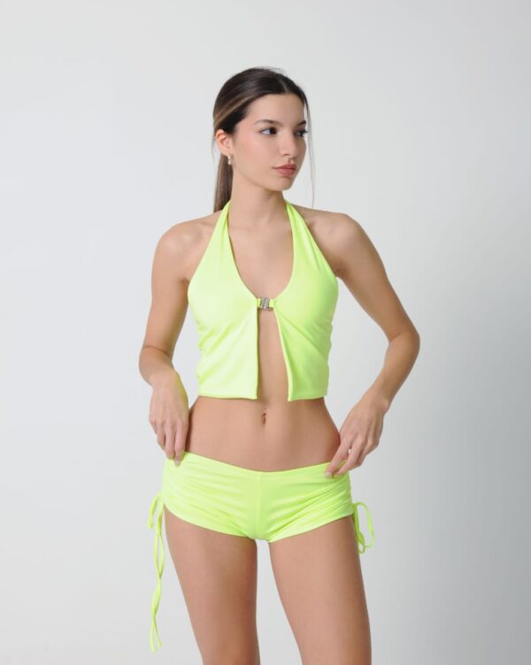 Top de tela microfibra strapless con argolla u y frunce detalle