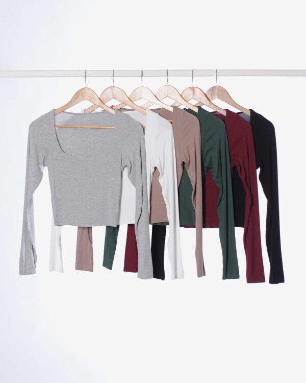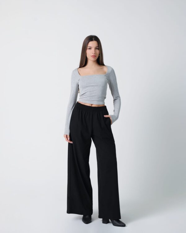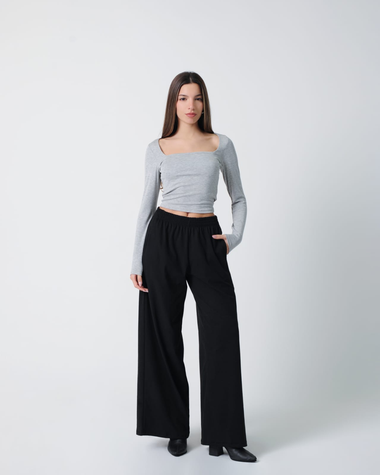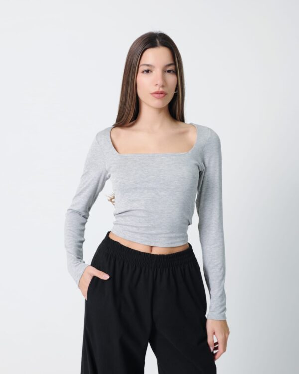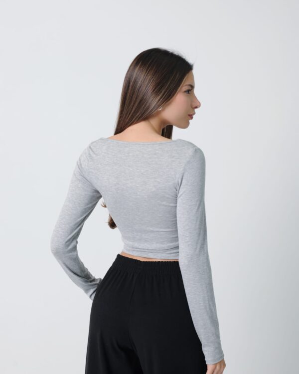 Top de tela Baby Kalm manga larga estilo off shoulder con fruncidos detalle y tajos en los lados