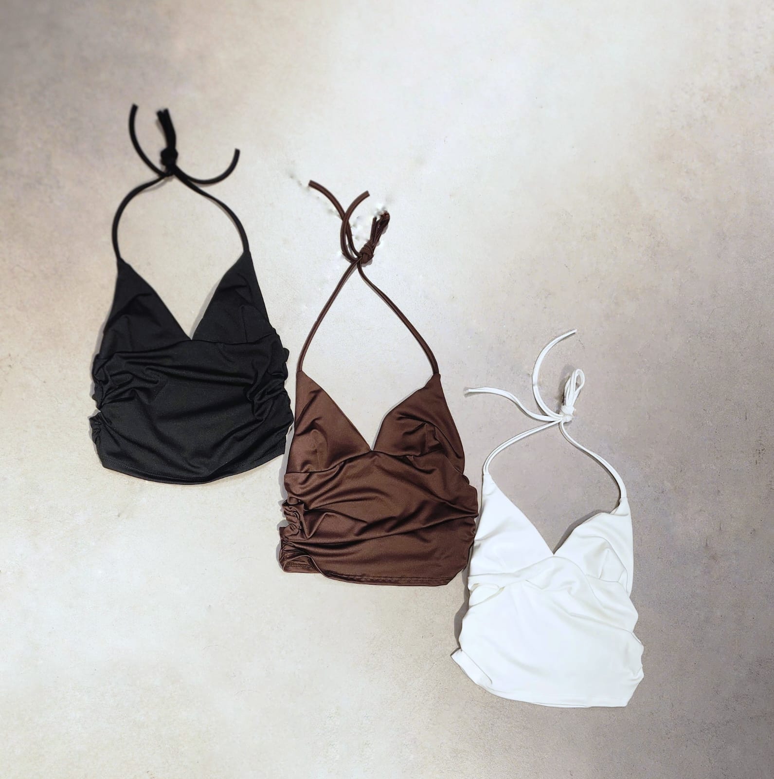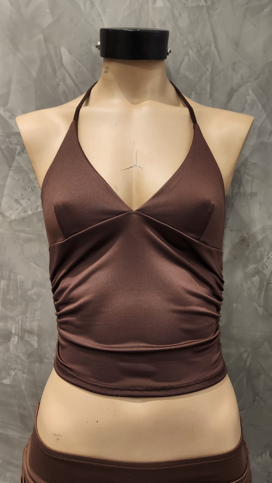 Top con escote en v y tiras para atar en cuello (microfibra )