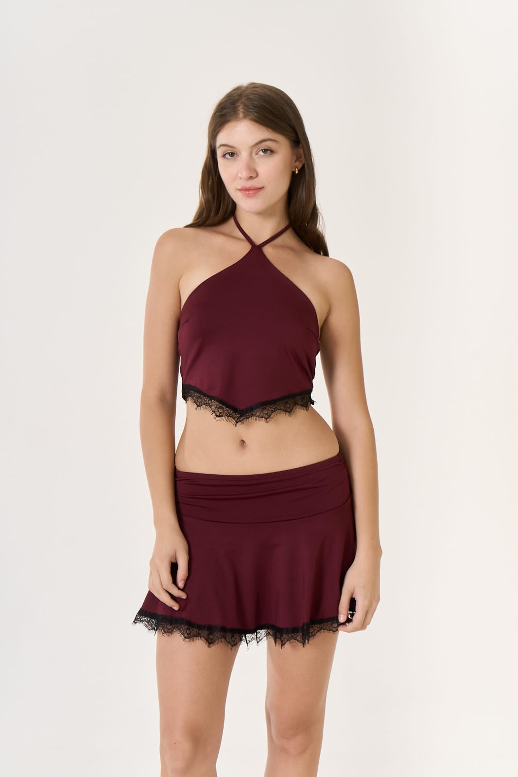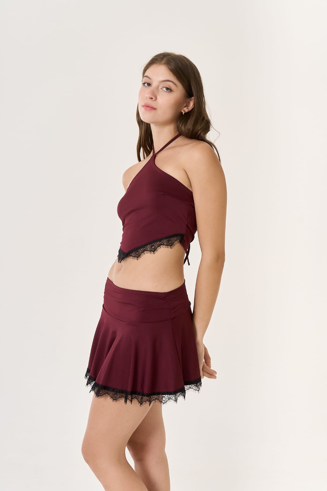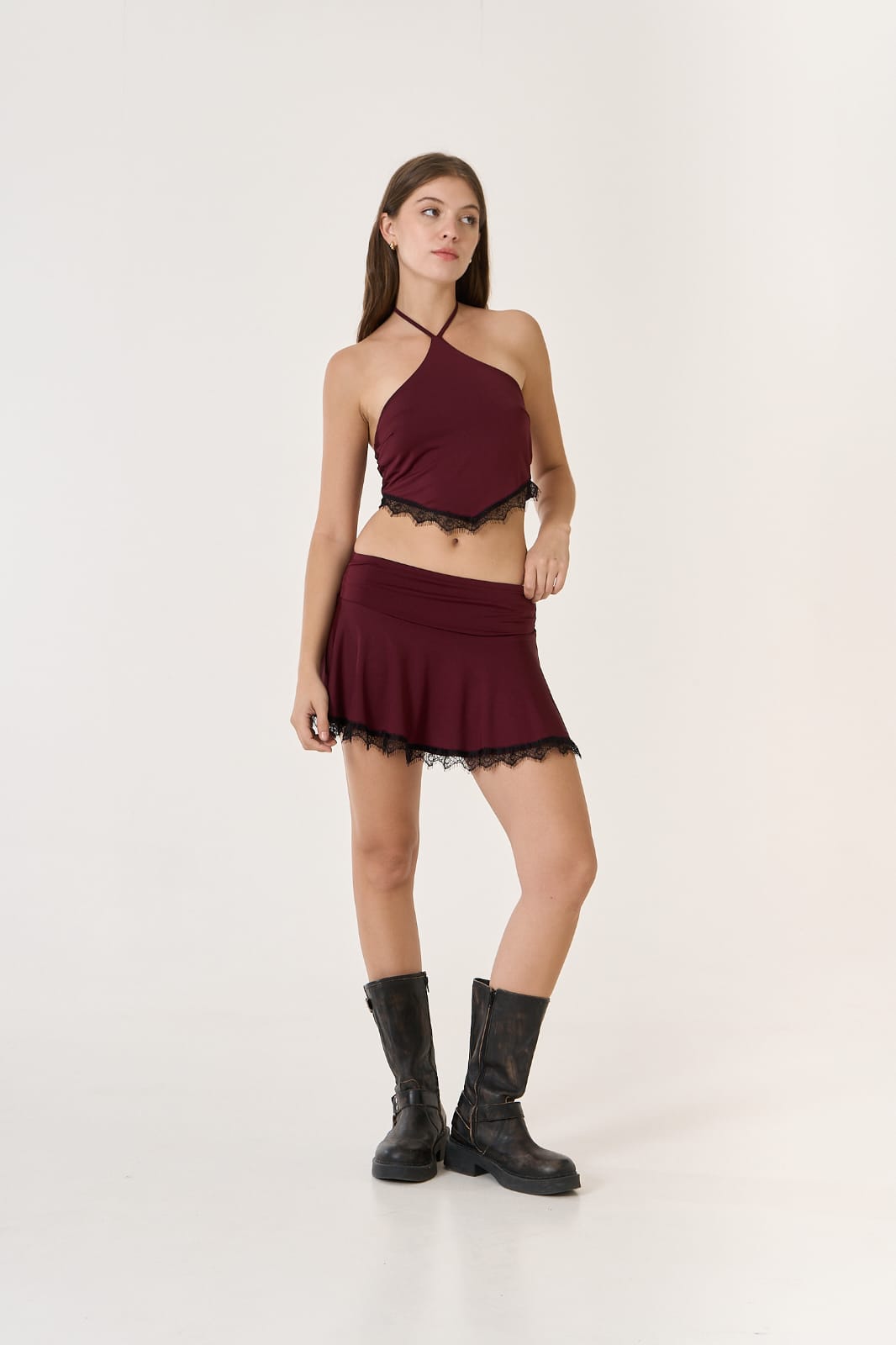 Top de microfibra rey estilo halter top con fruncidos sutiles