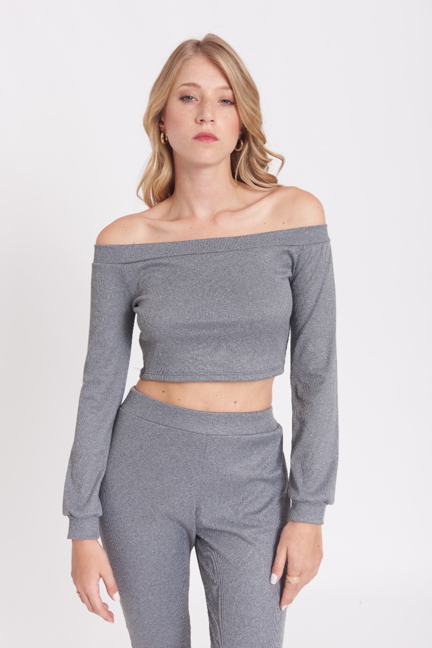 Top de Morley y Lycra Manga Larga con Cuello Bote