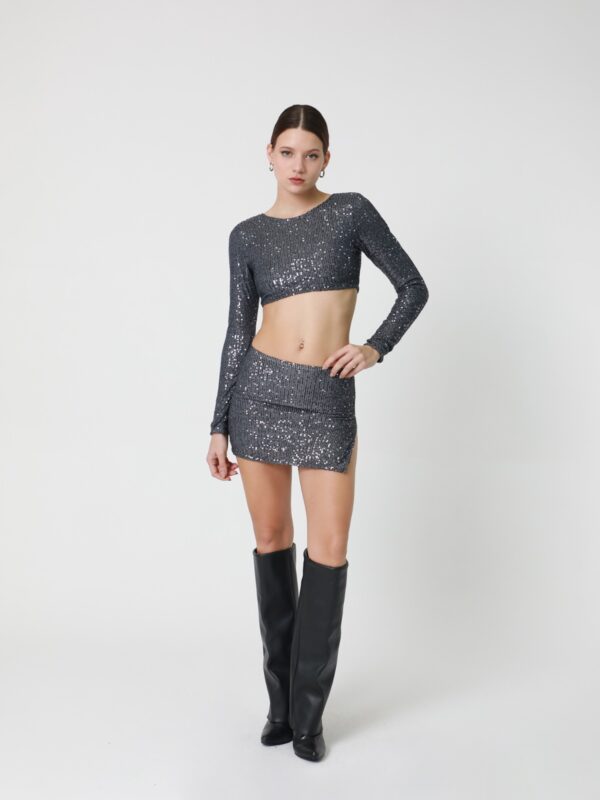 Top de Lentejuelas Mangas Largas con Tiras en la Espalda