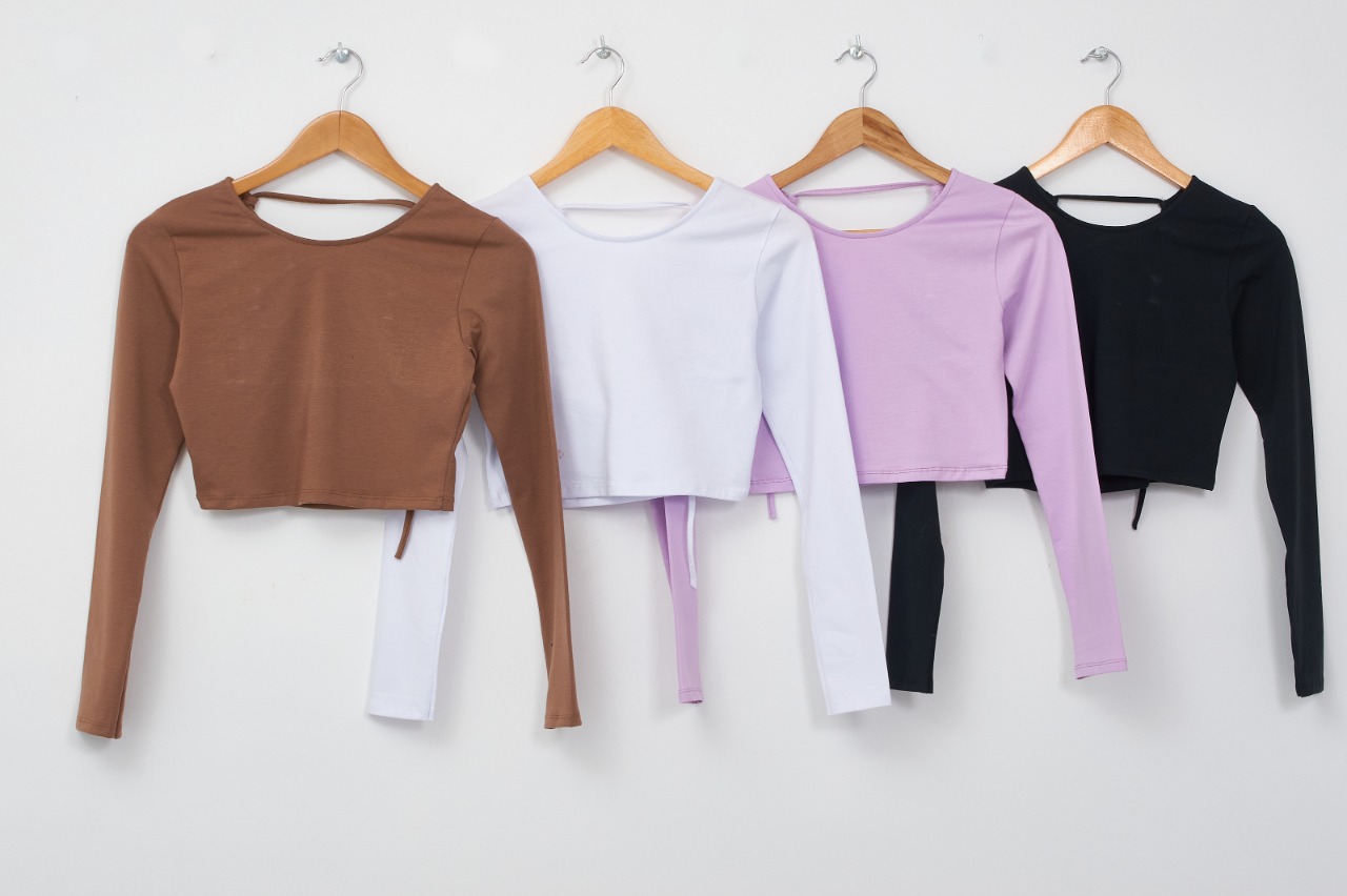Top de Algodon con Espalda Descubierta y Tiras Cruzadas
