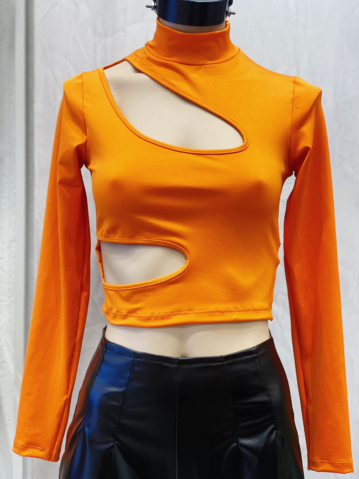 Top de tela Baby Kalm manga larga estilo off shoulder con fruncidos detalle y tajos en los lados