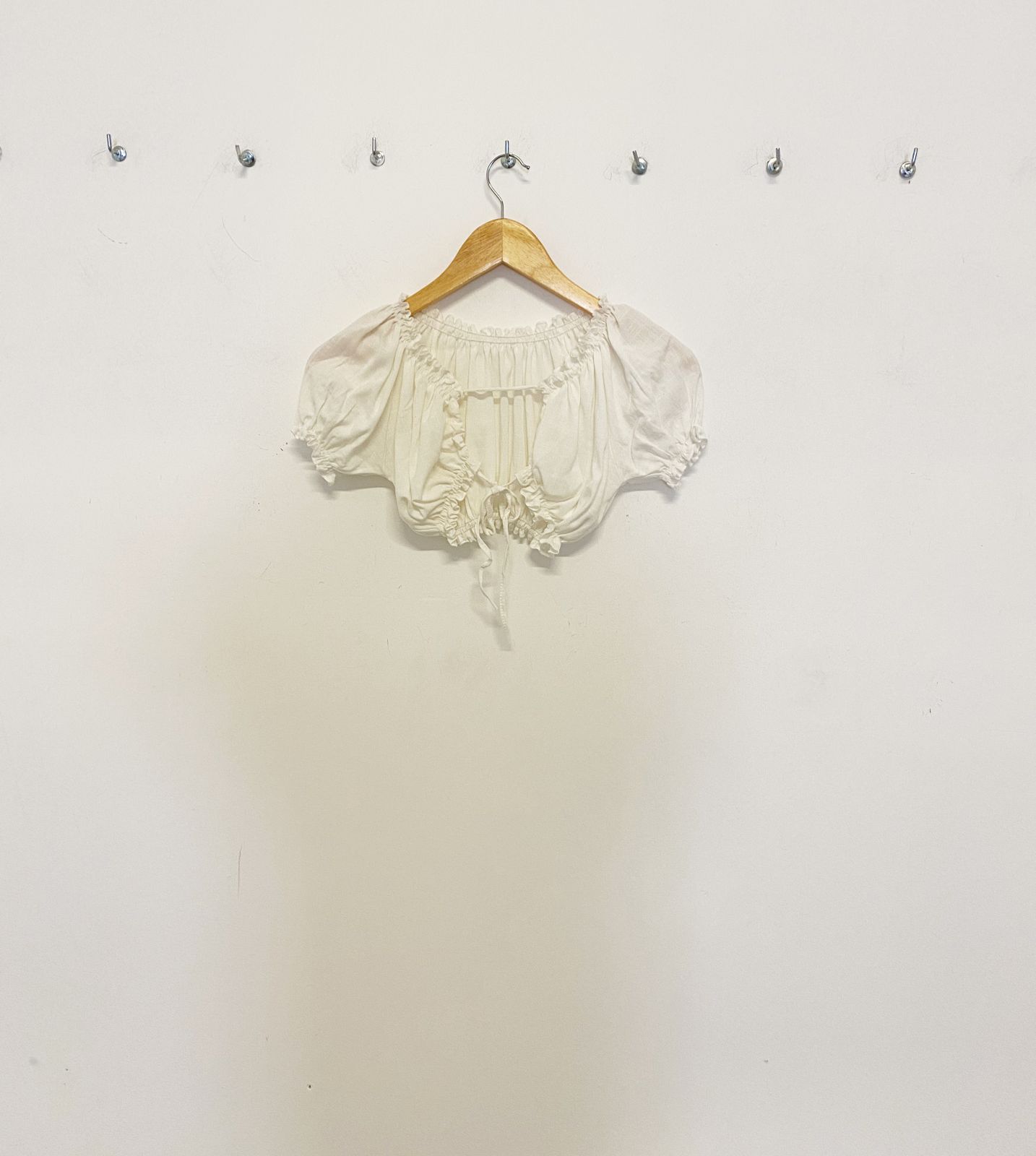 Top de tela microfibra strapless con argolla u y frunce detalle