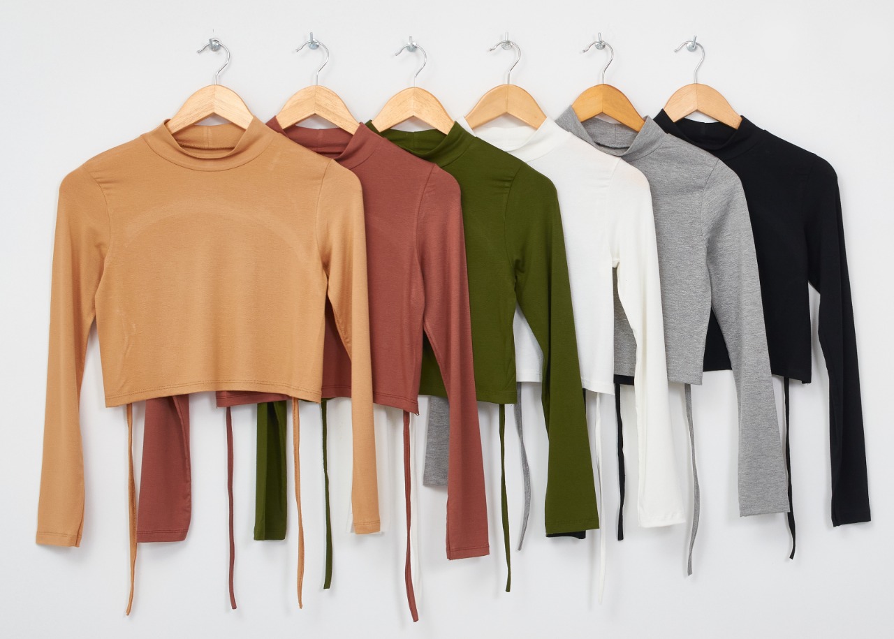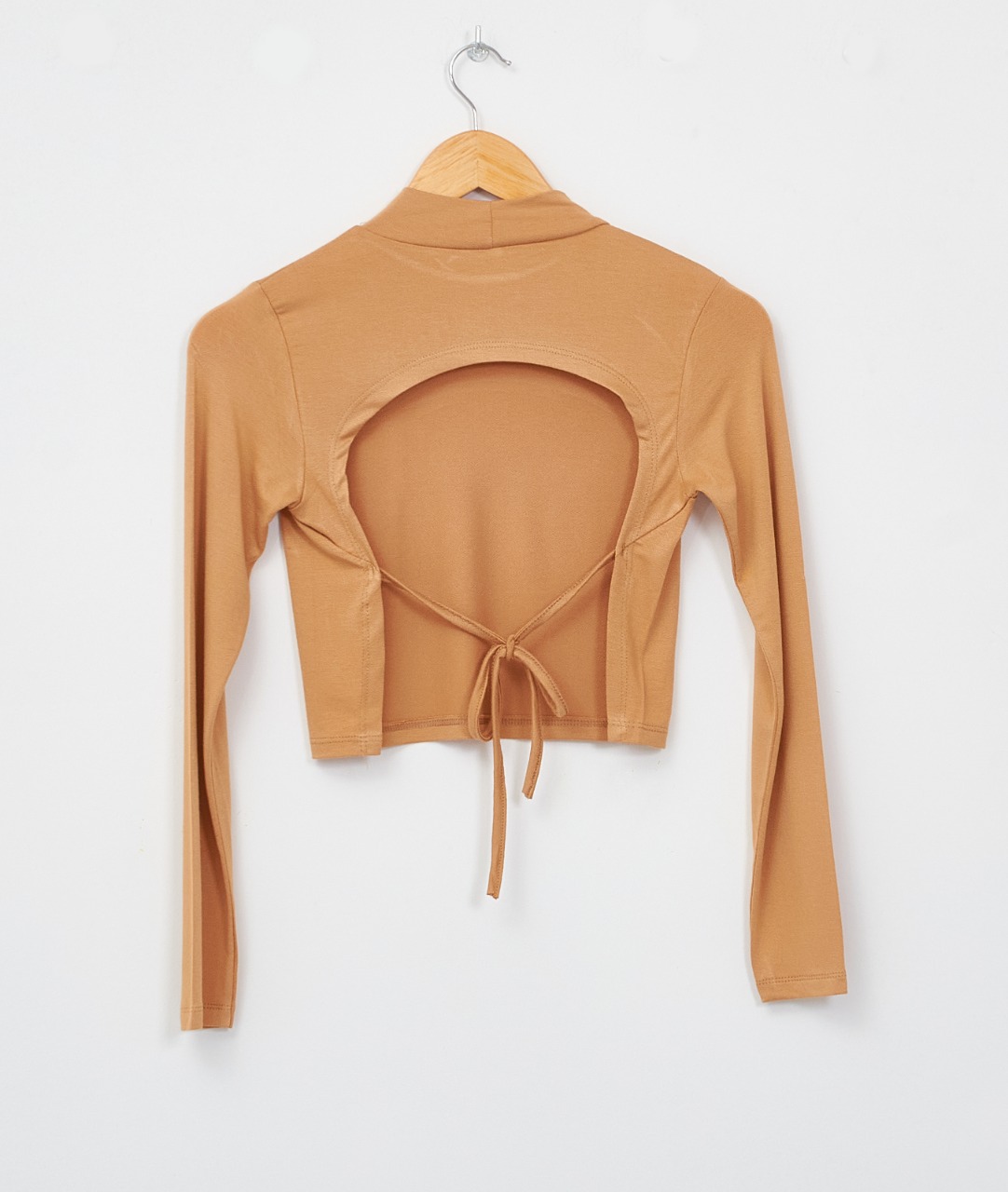 Top Manga Larga de Crepe con Viscosa con Espalda Descubierta