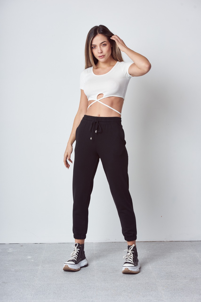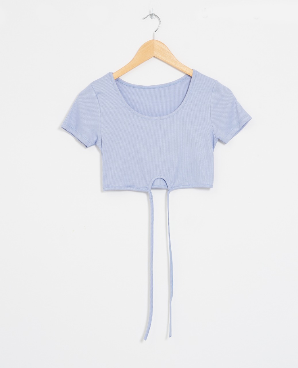 Top de tela Baby Kalm manga larga estilo off shoulder con fruncidos detalle y tajos en los lados