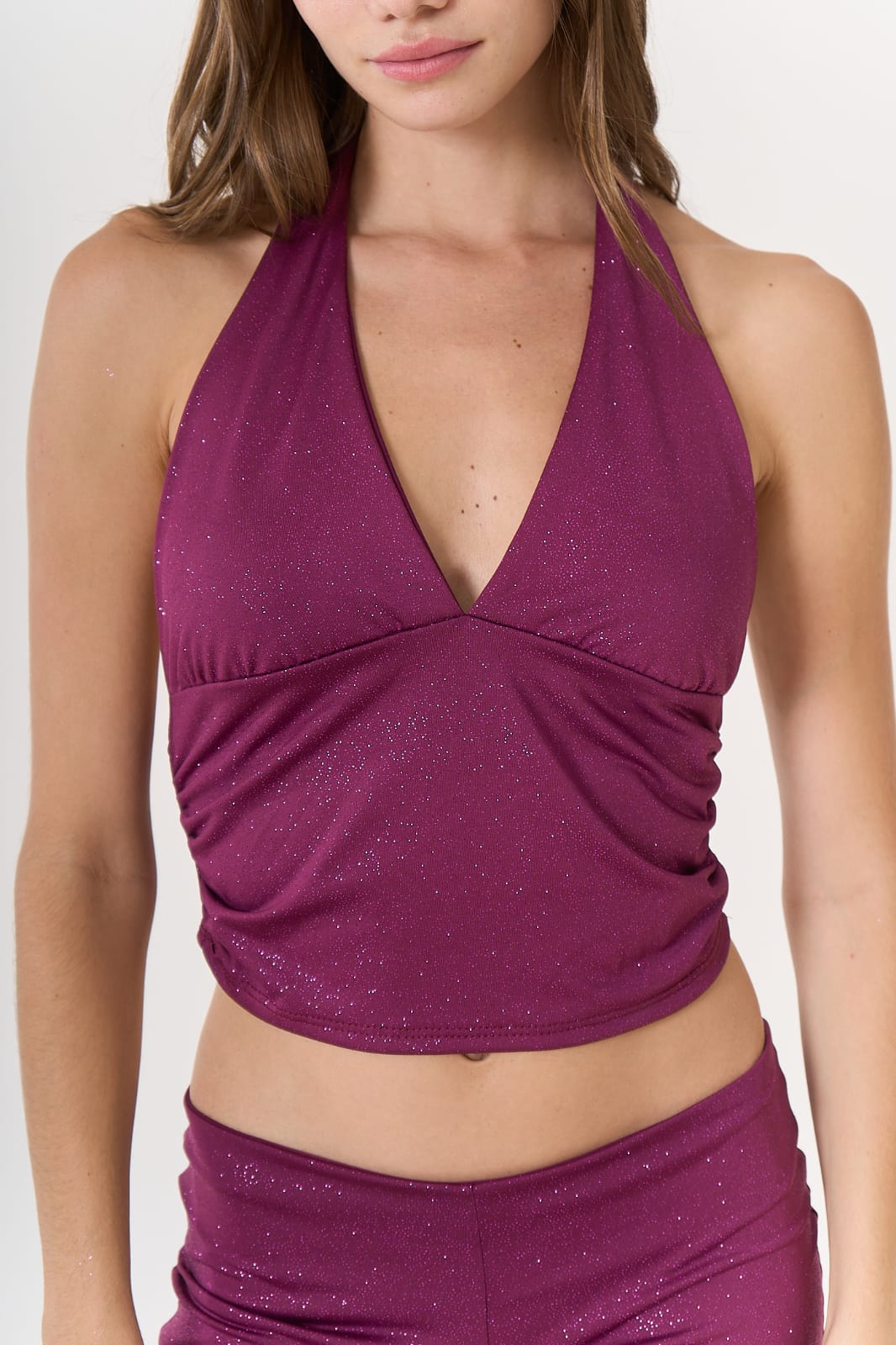 Top de microfibra rey estilo halter top con fruncidos sutiles