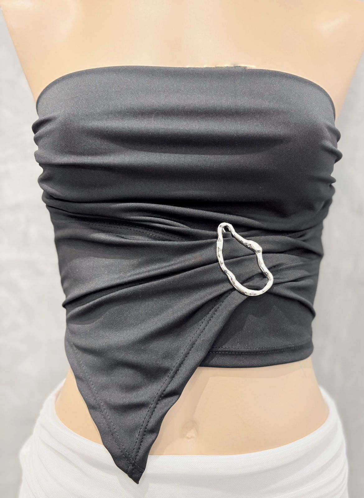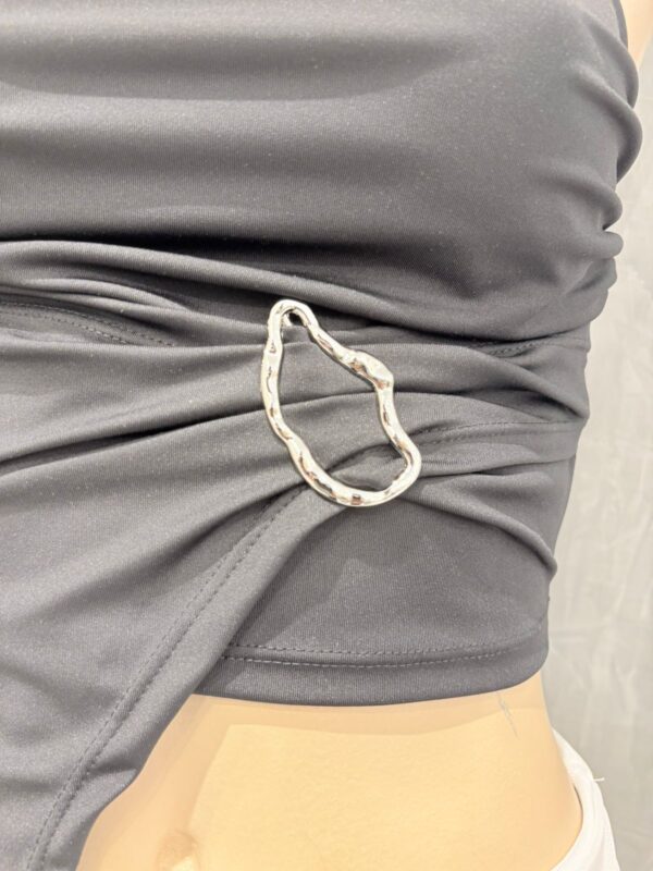 Top de tela Milano brillosa estilo halter con frunce detalle y nudo de cuello
