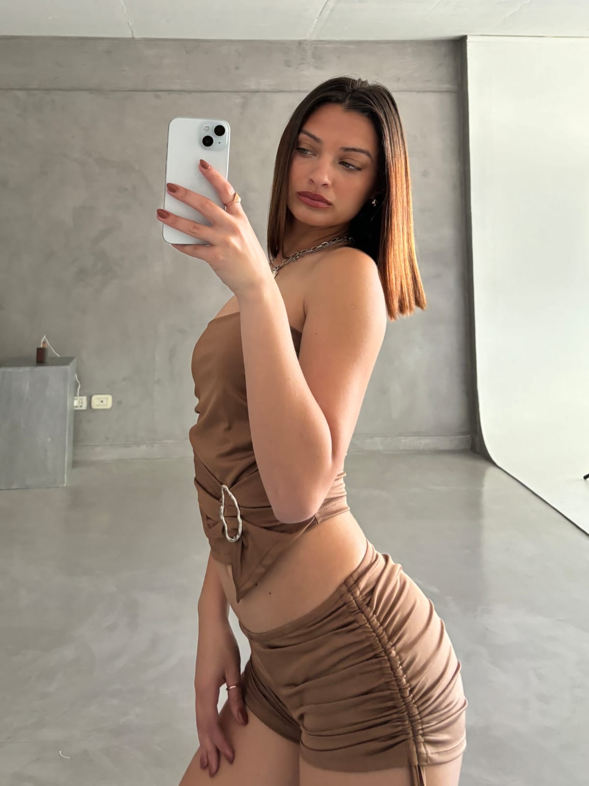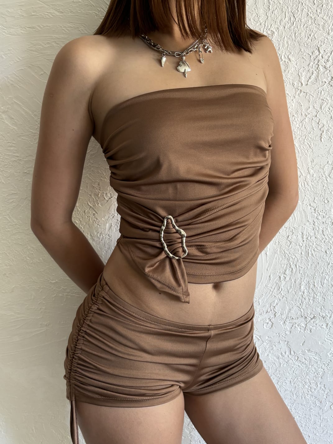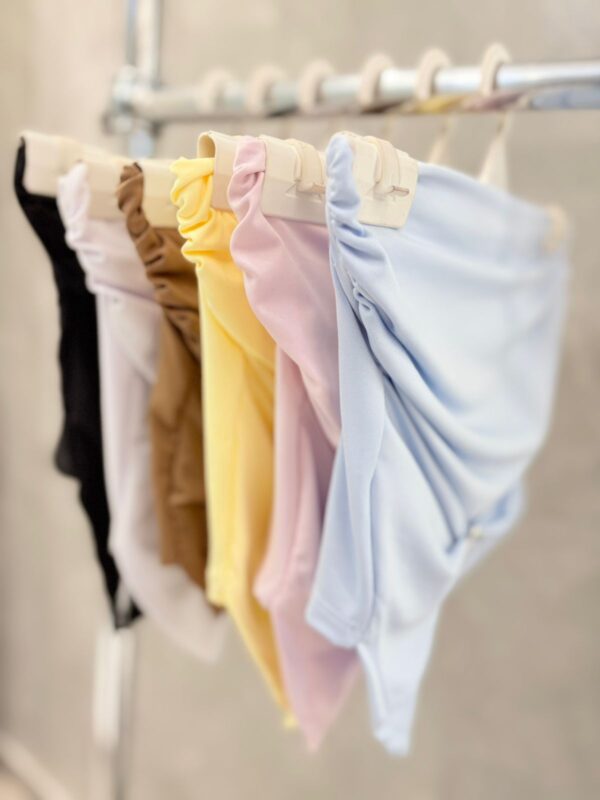 Top de tela Baby Kalm estilo off shoulder con cierre, manga larga