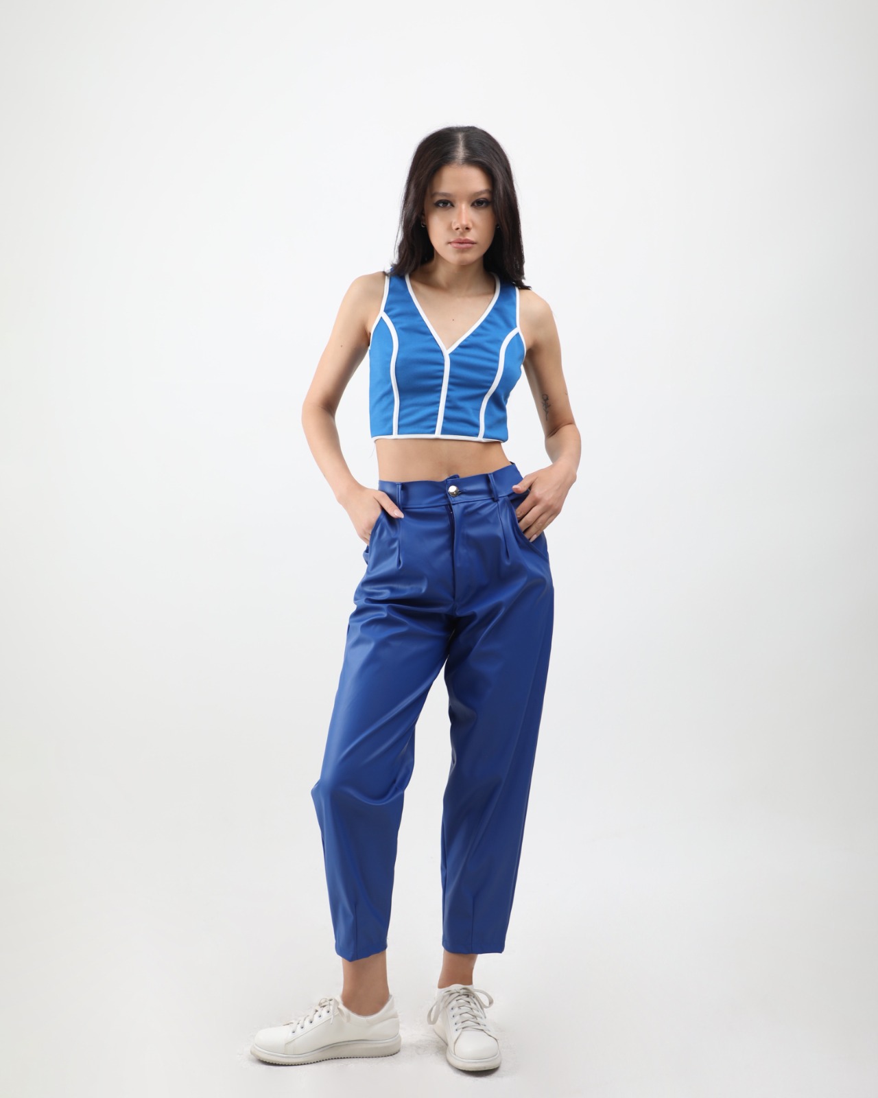 Top de microfibra rey estilo halter top con fruncidos sutiles
