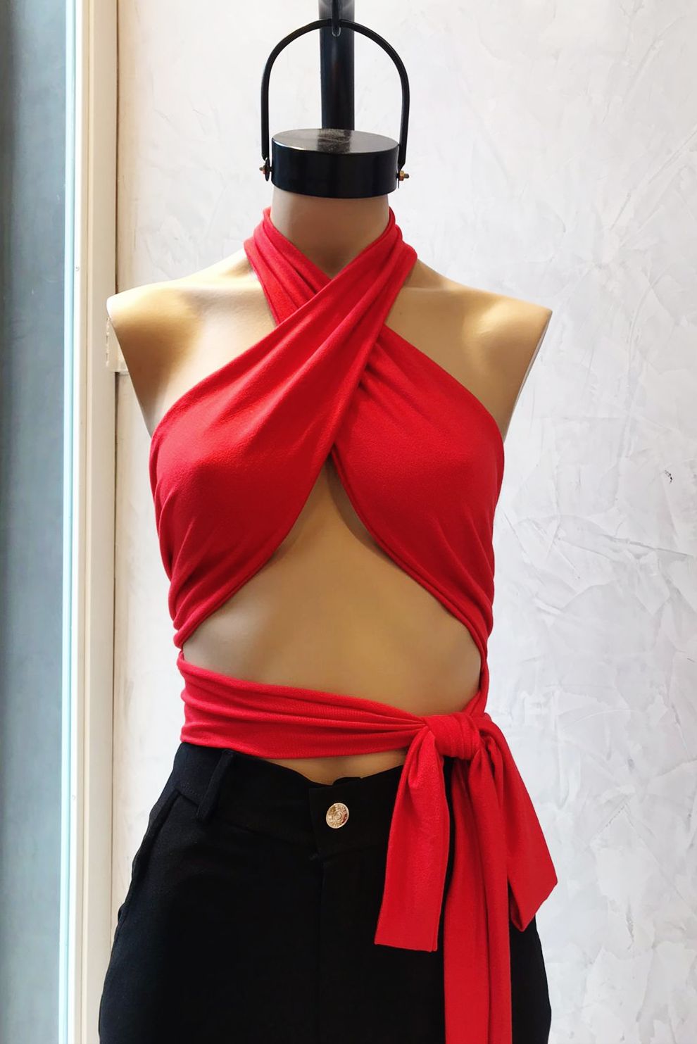 Top con buche y argollita p/atar en la espalda (microfibra)