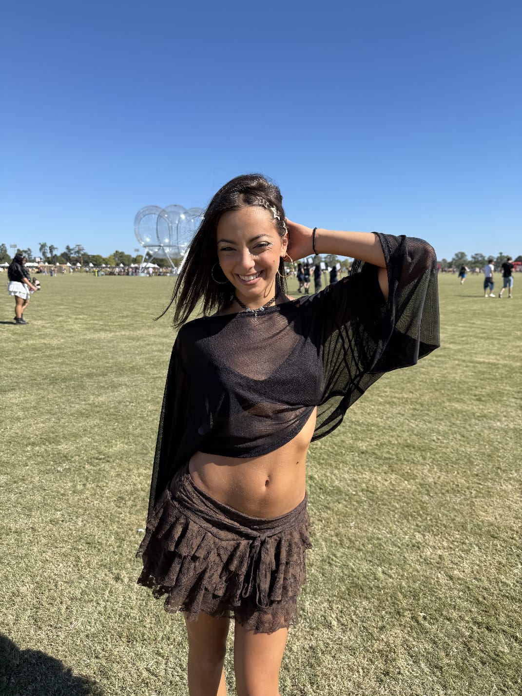 Top de tela microfibra strapless con argolla u y frunce detalle