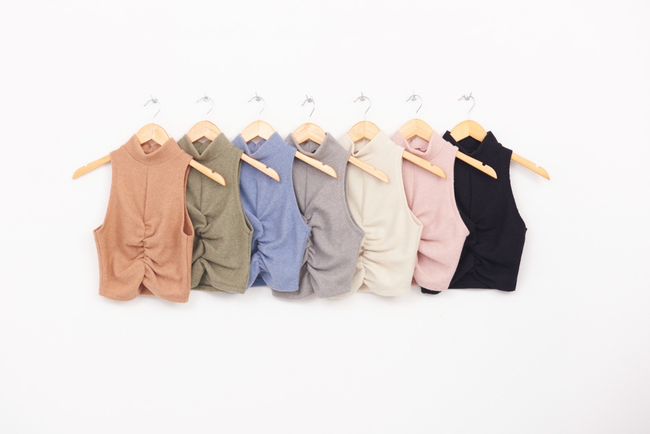 Musculosa Media Polera de Lanilla con Frunce en el Medio