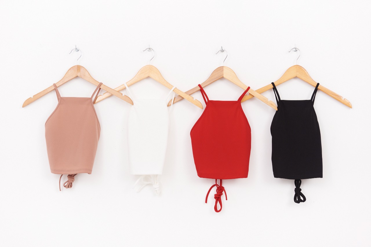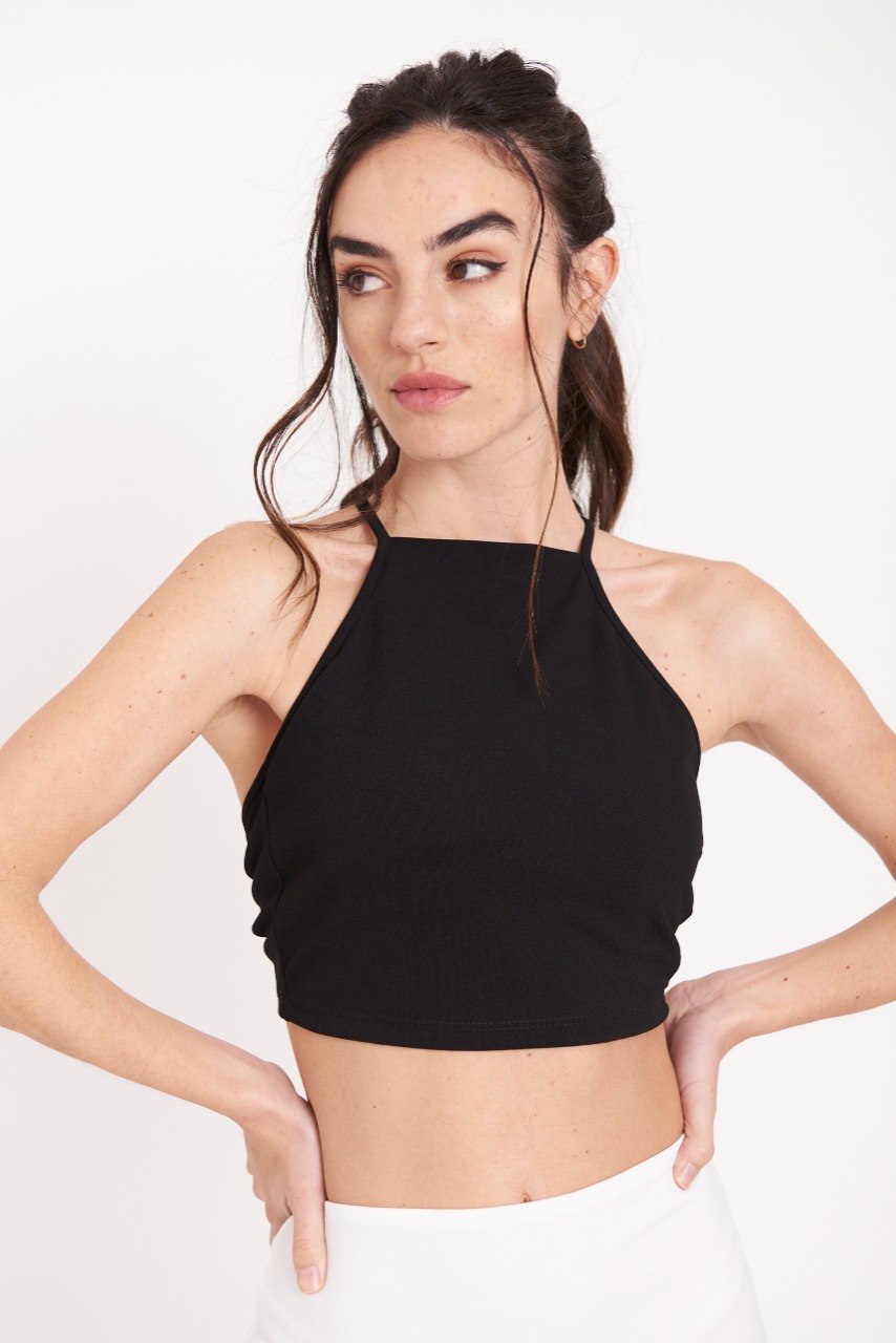 Top de microfibra rey estilo halter top con fruncidos sutiles