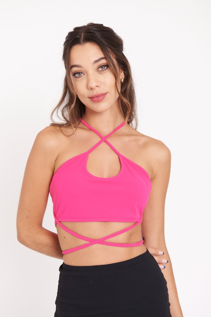 Top con buche y argollita p/atar en la espalda (microfibra)