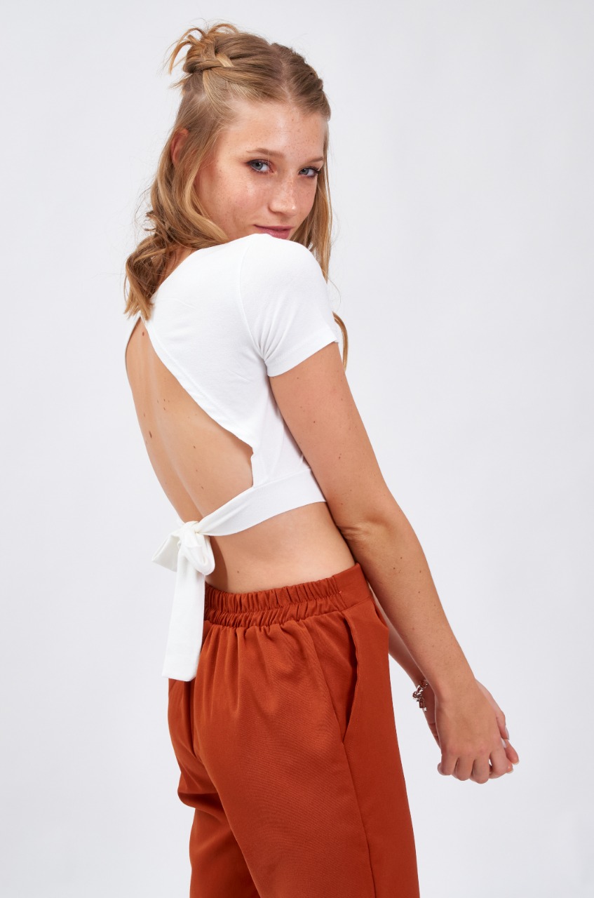 Top de Crepe con Viscosa con Espalda Abierta y Lazos