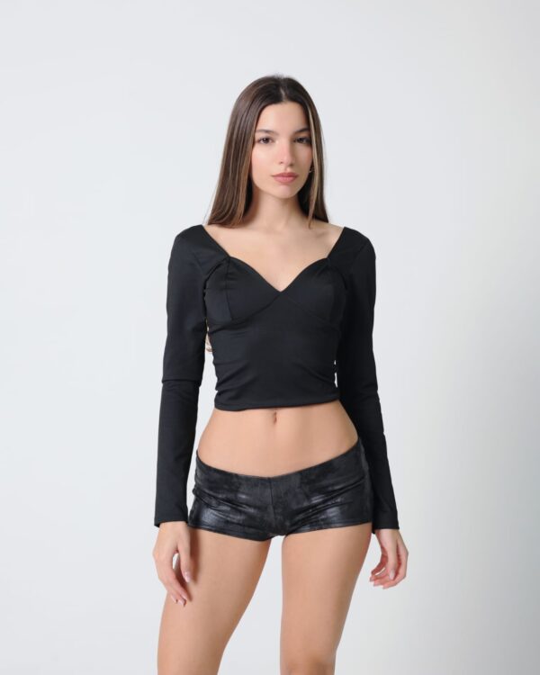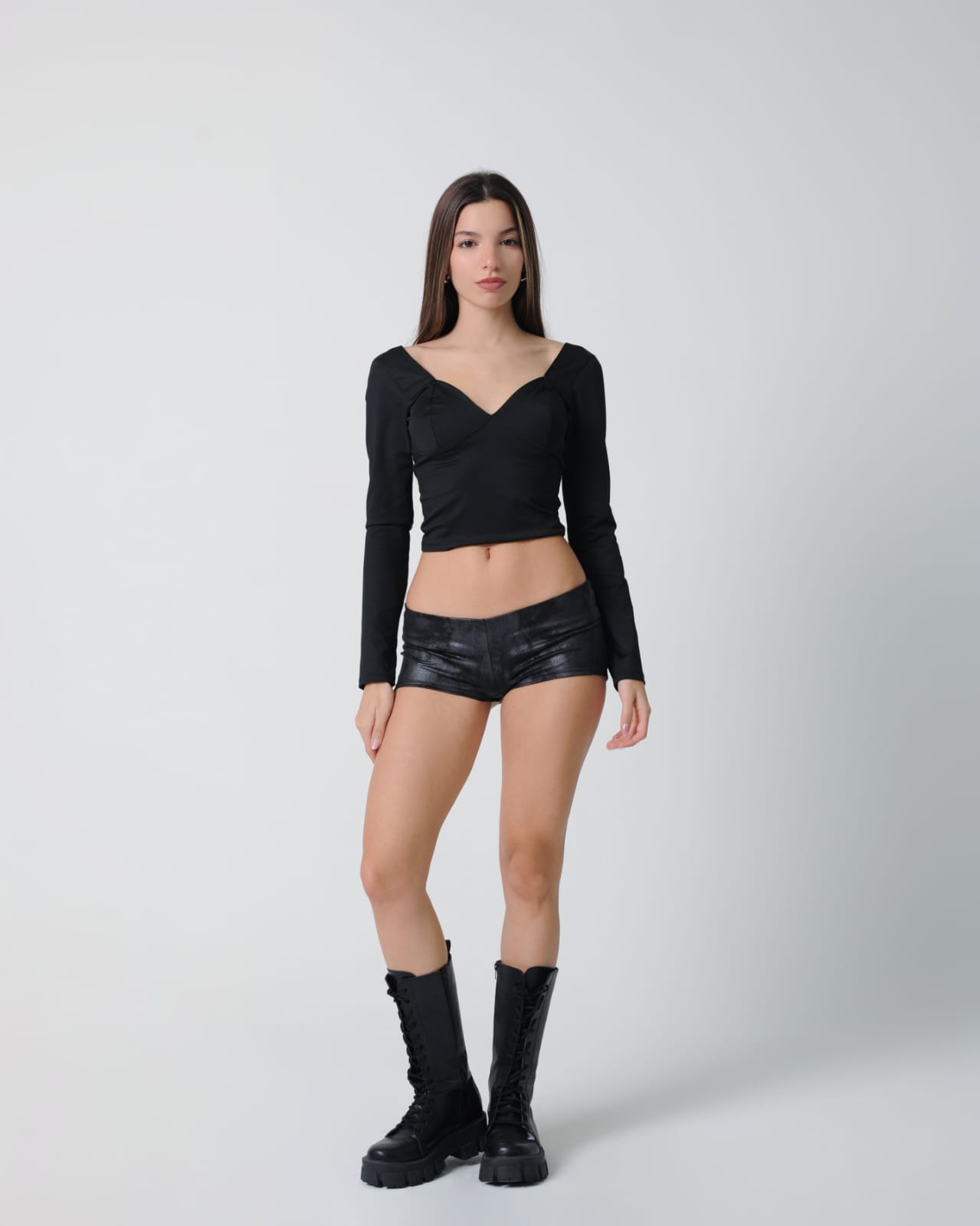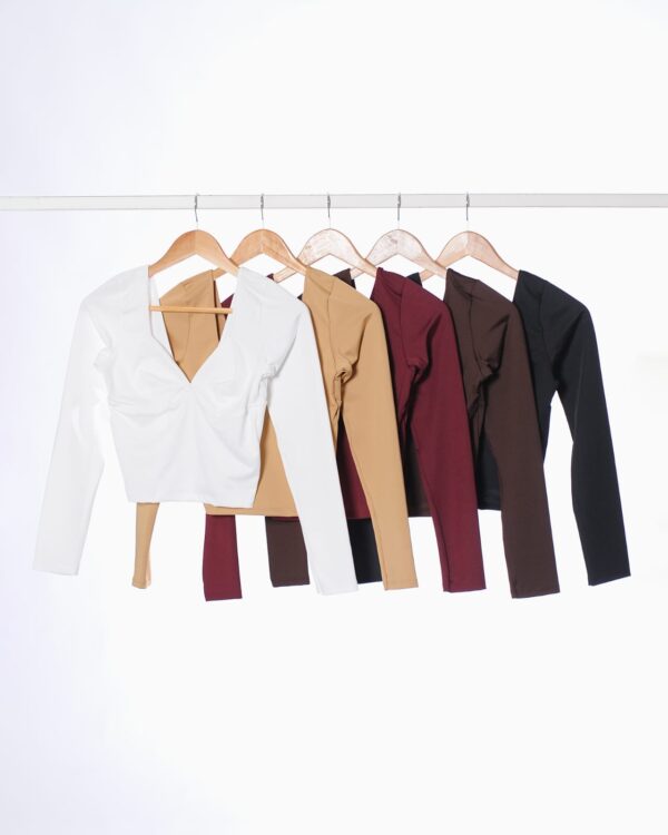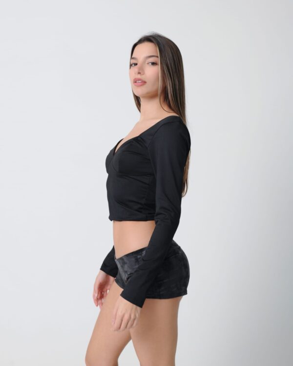 Top de tela Baby Kalm manga larga estilo off shoulder con fruncidos detalle y tajos en los lados