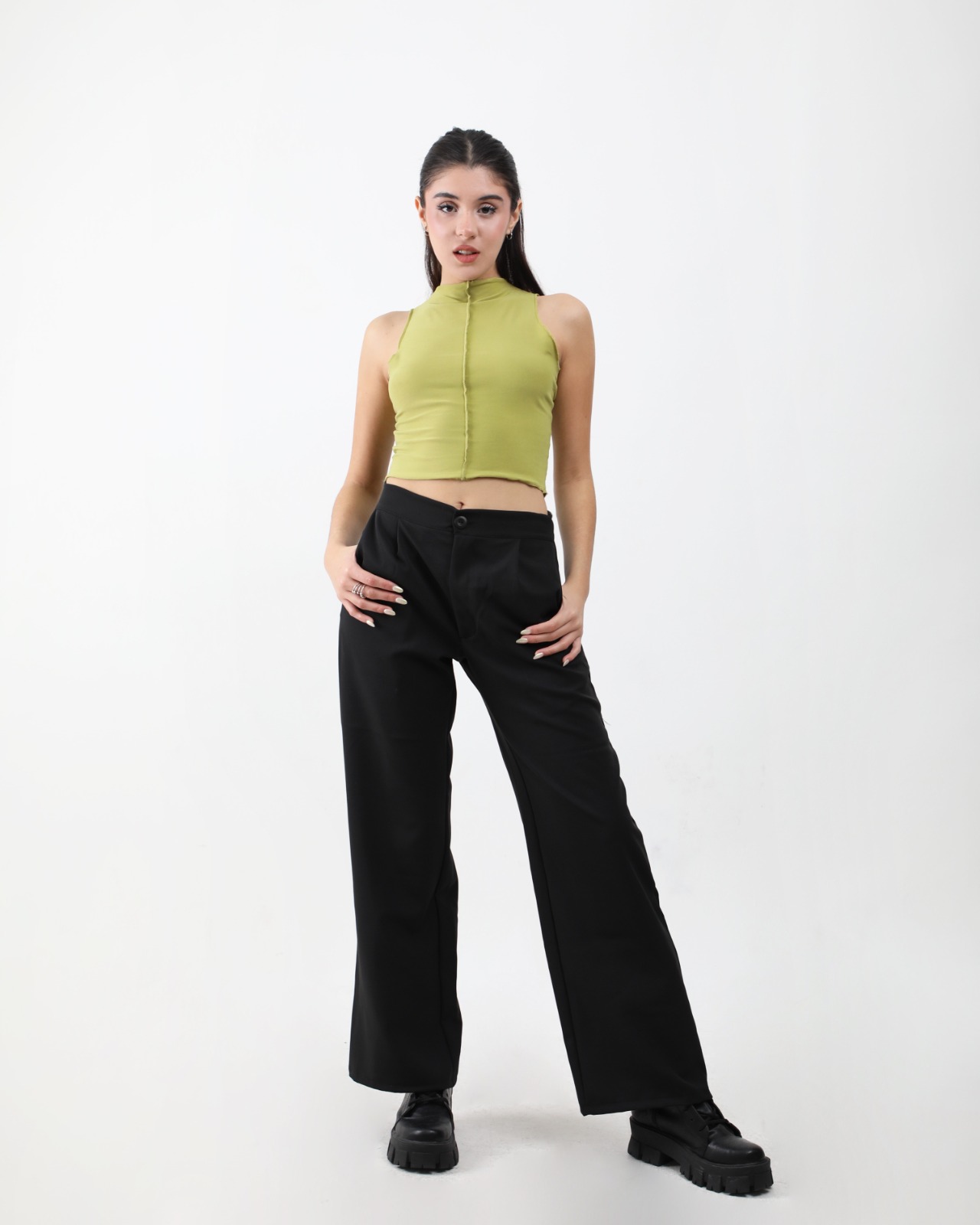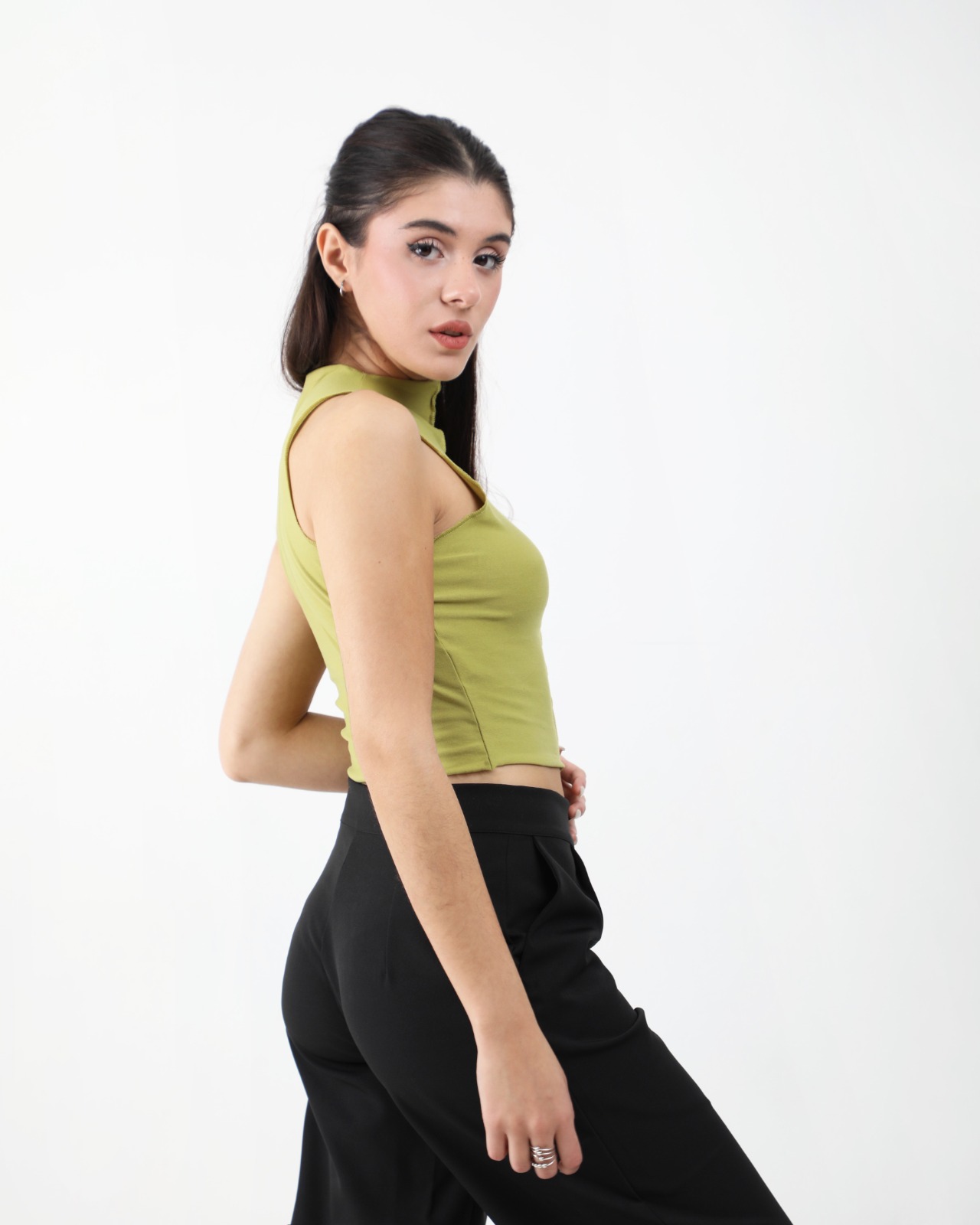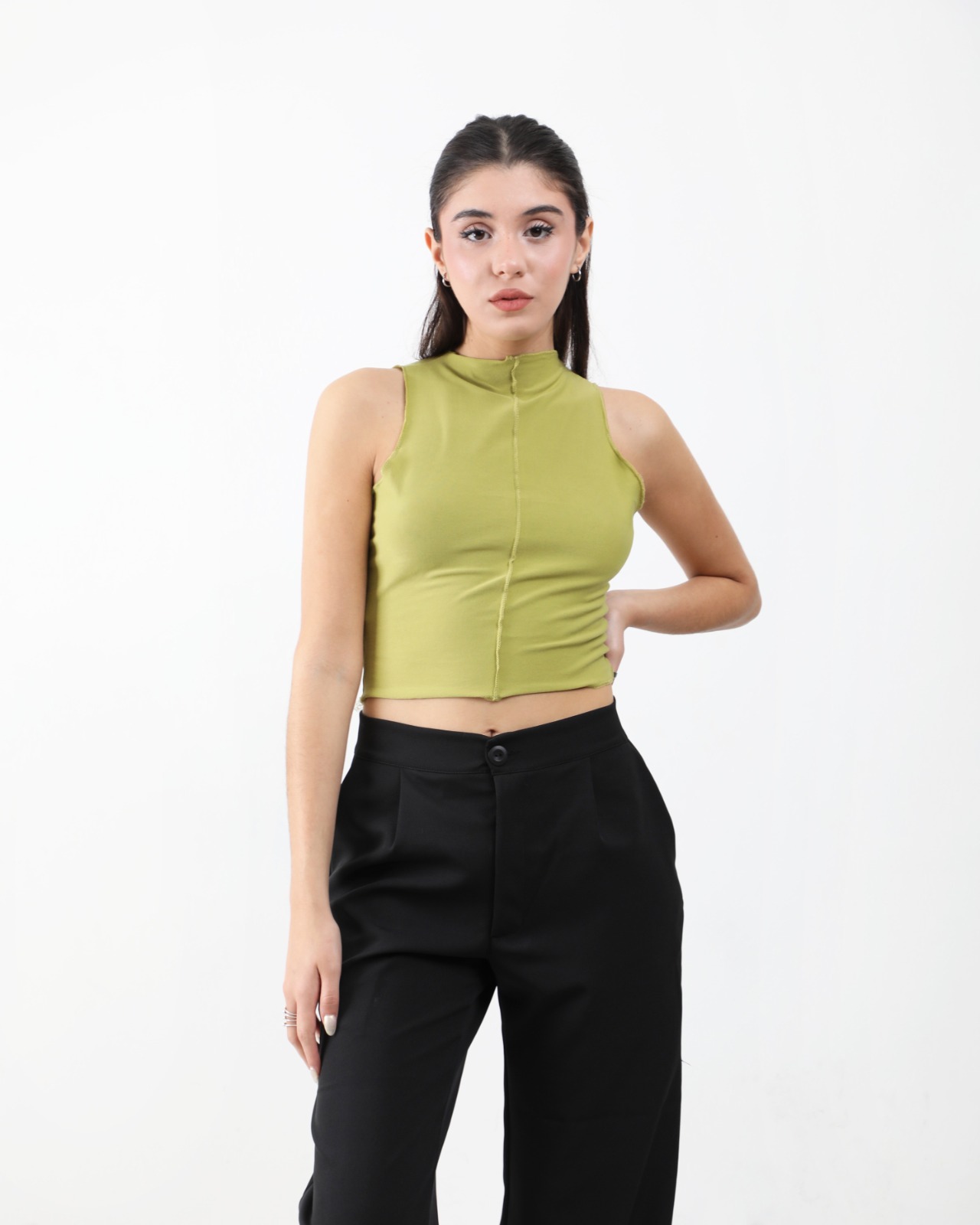 Top de microfibra rey estilo halter top con fruncidos sutiles