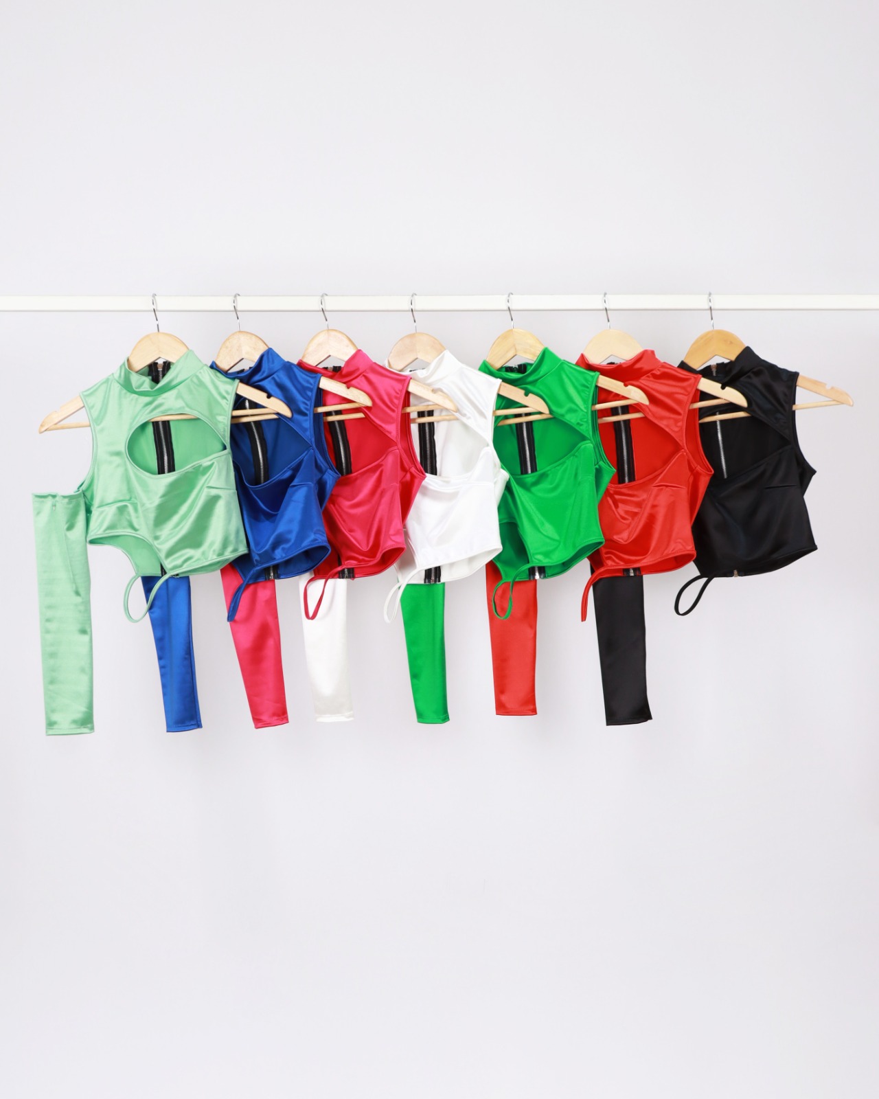 Top de Saten con Tajo y Una Manga