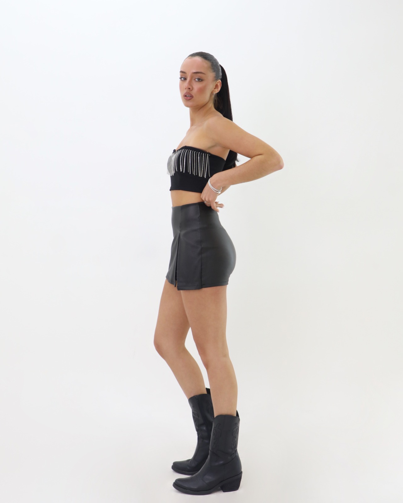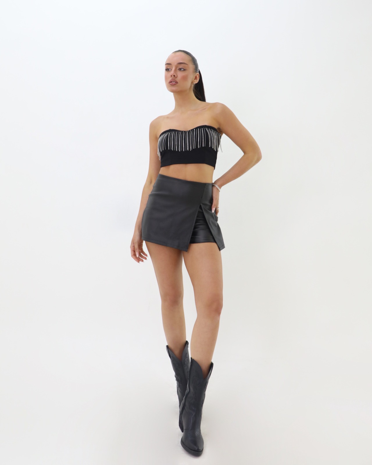 Top de microfibra rey estilo halter top con fruncidos sutiles