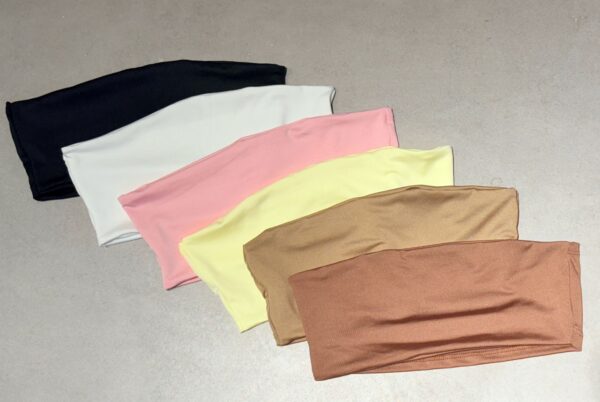 Top de tela microfibra strapless con argolla u y frunce detalle