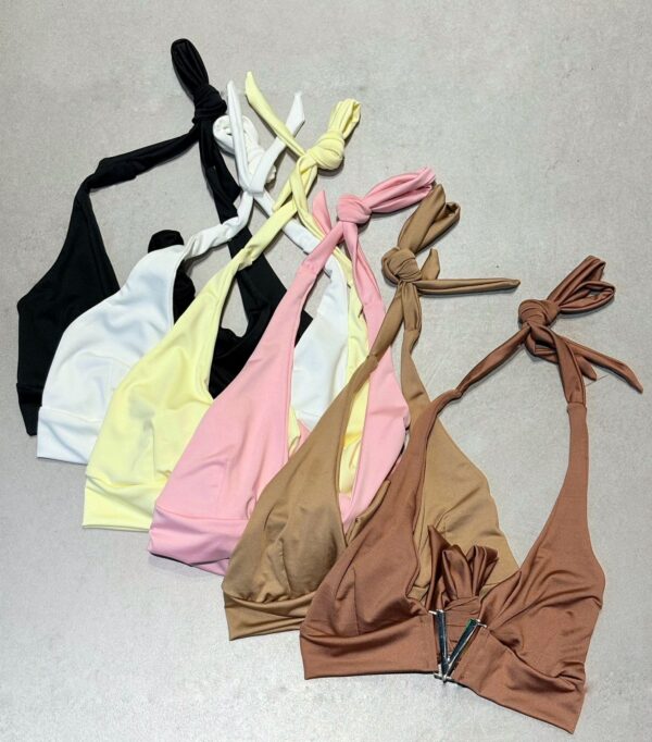 Top de tela microfibra strapless con argolla u y frunce detalle