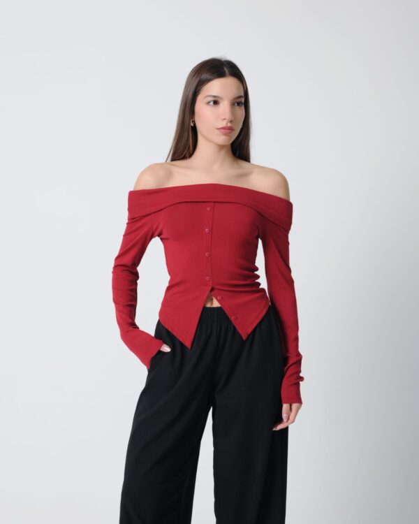 Top de tela Milano brillosa estilo halter con frunce detalle y nudo de cuello