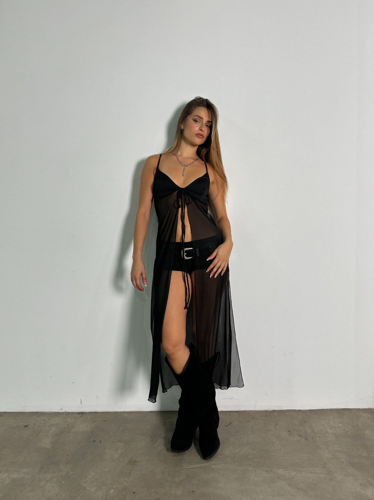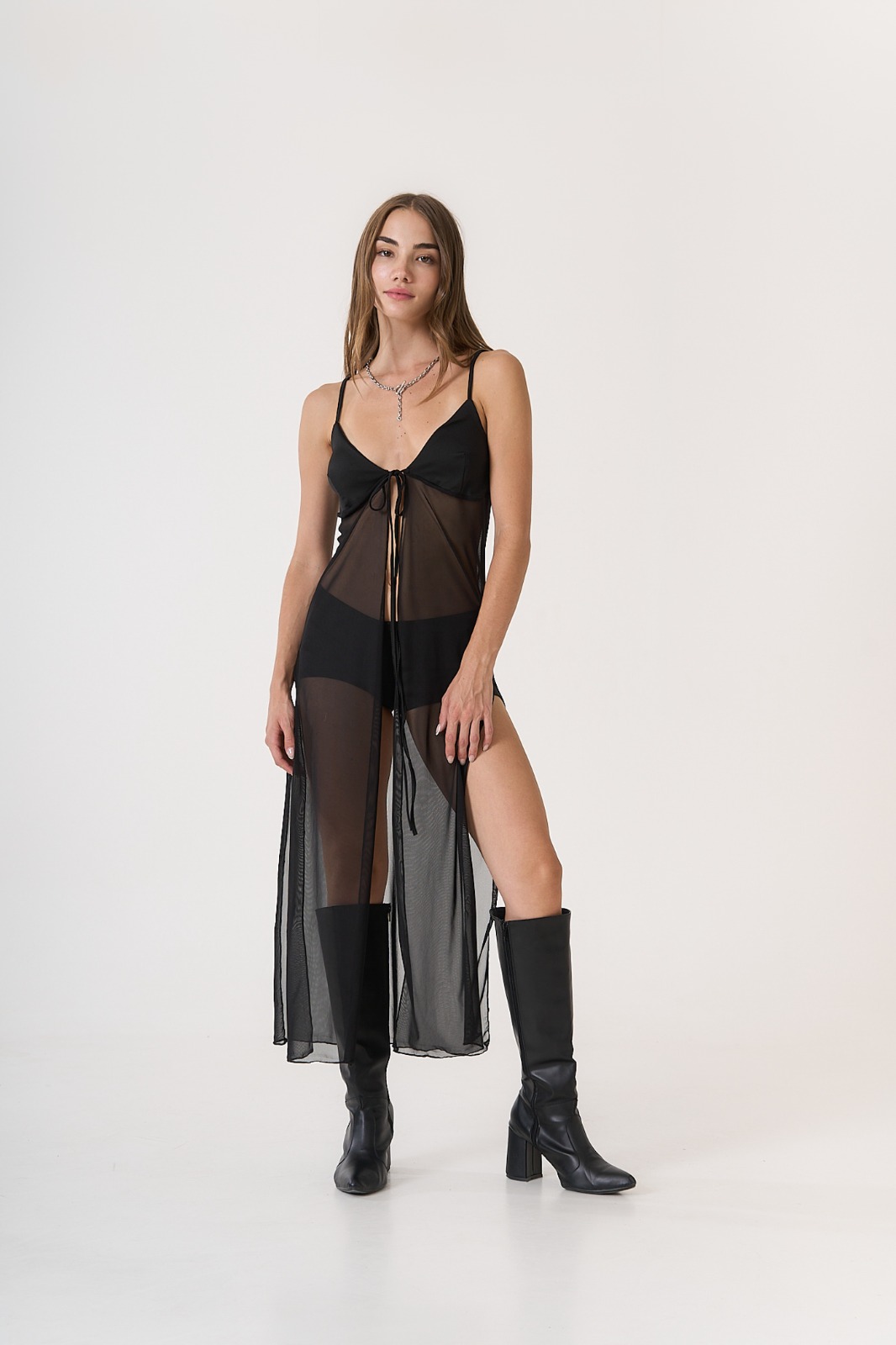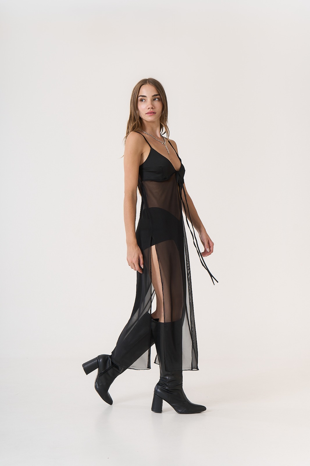 Vestido de tela Tull con straps y cinta ajustable.