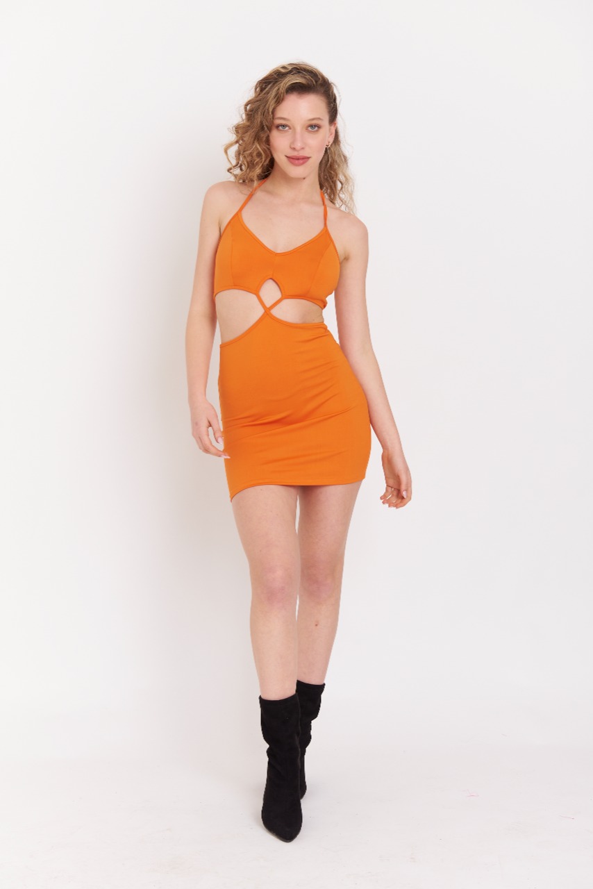 Vestido largo con tajo en costado y aplique en U con buche TELA MILANO
