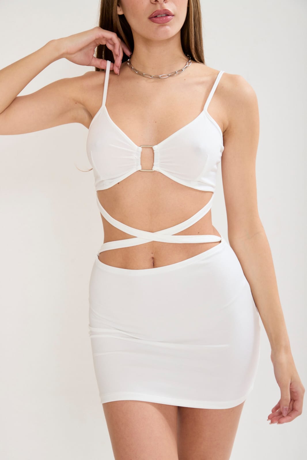 Vestido corto de Lentejuelas opacas escote V con fruncido detalle