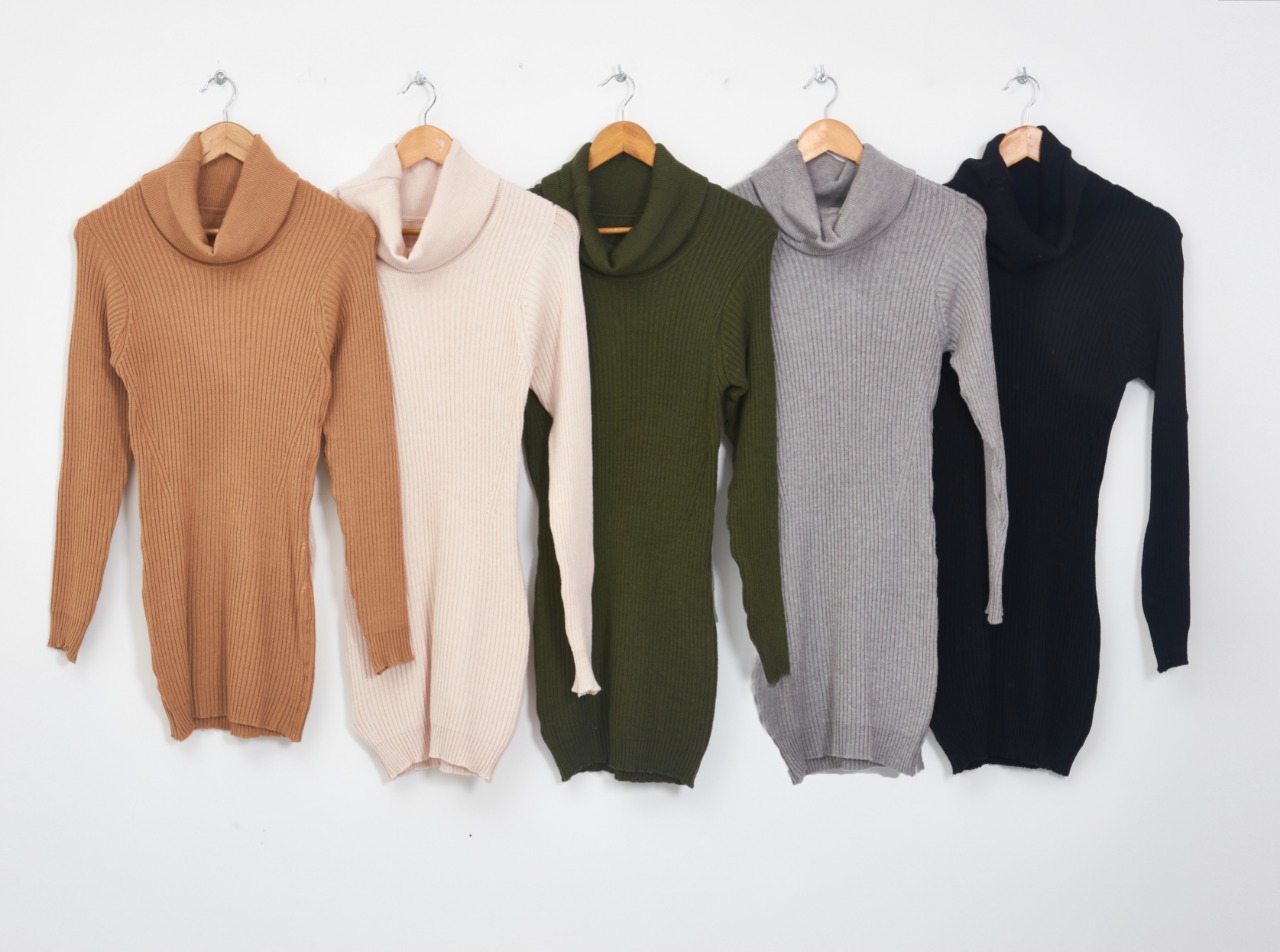 Vestido Manga Larga Tejido de Hilo y Lycra con Polera