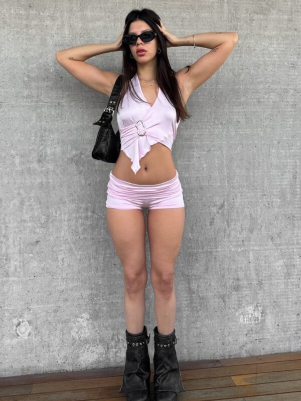 Top de microfibra halter tiritas para atar escote V(MICROFIBRA )